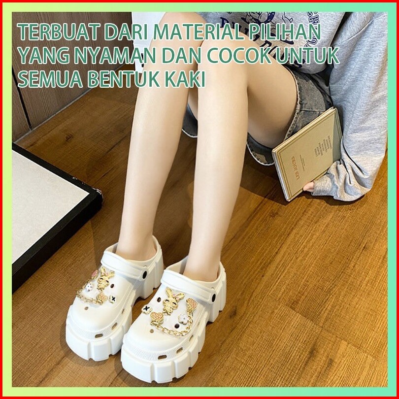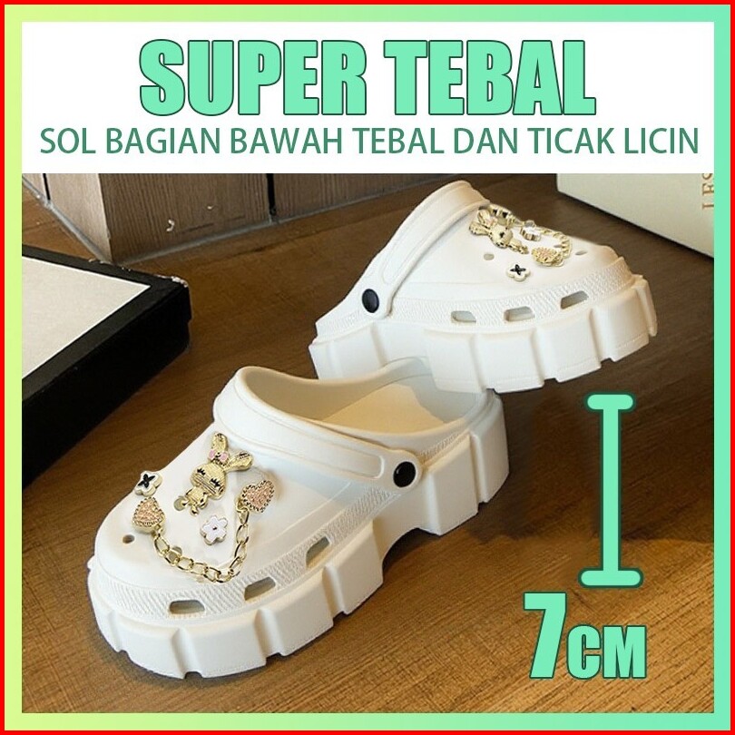 Yink Sandal Baim Tinggi Jibbitz 7.5cm Tebal Rabbit Premium Terbaru Eva Sendal Wedges Wanita Elegan Kekinian Korean Style