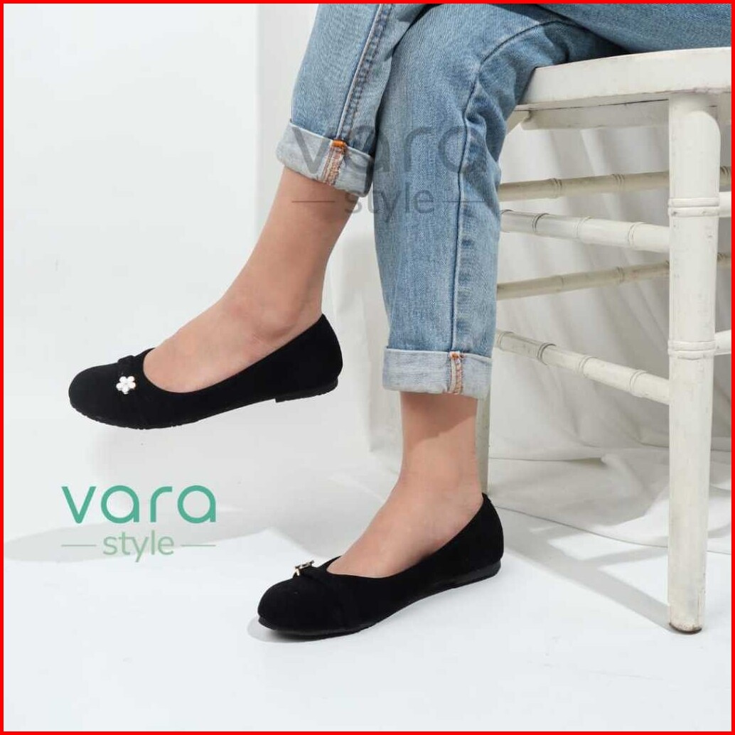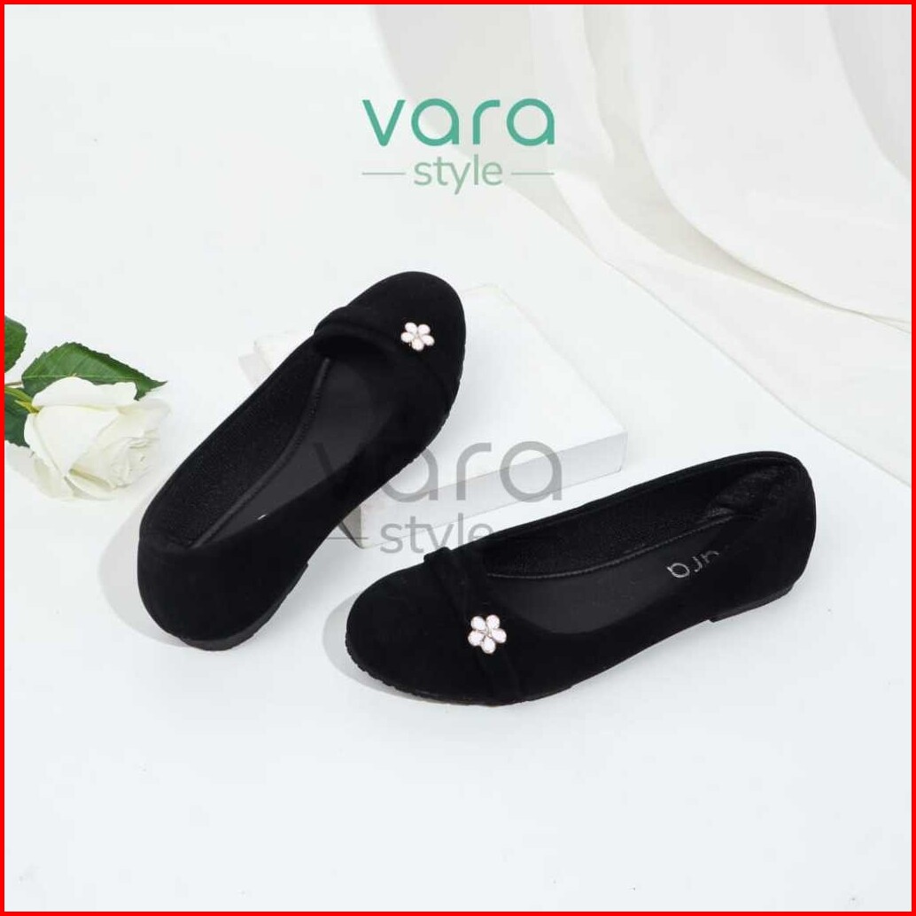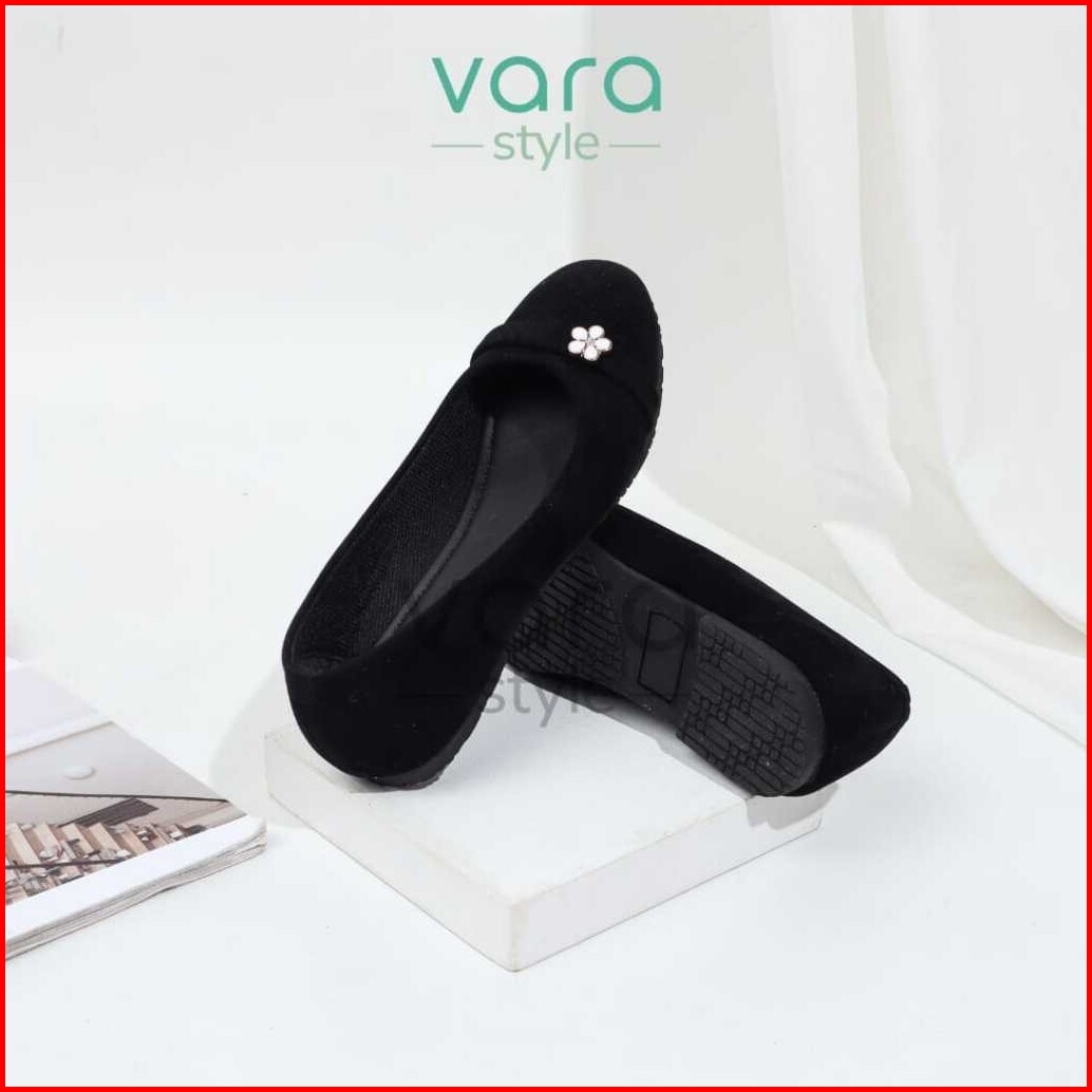 Vara Elora Sepatu Flatshoes Simpel Wanita Hitam Beludru Anti Slip Vr1006