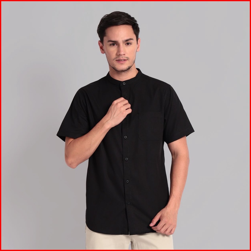 Open Ending Kemeja Pria Shanghai Poplin Pendek Hitam Pss-001