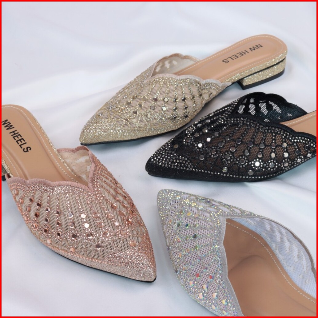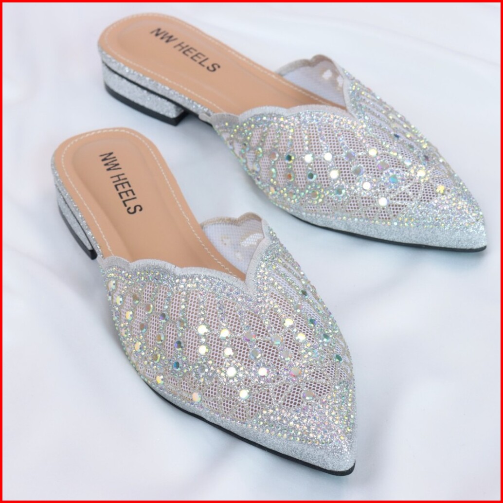 Sepatu Sandal Kondangan Diamond Wanita Import Flatshoes 1 Cm Mules Pesta Pengantin