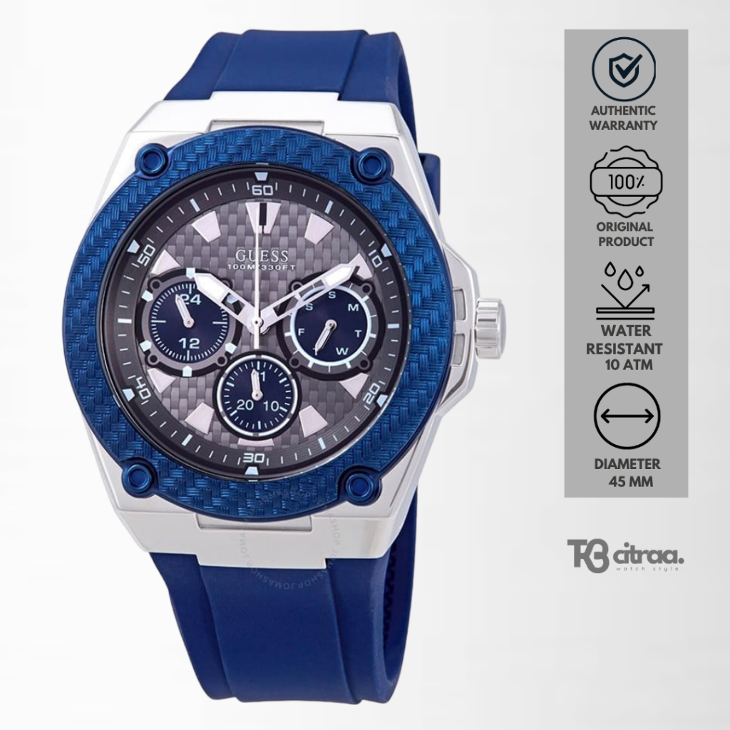 jam tangan fashion pria guess Lagecy analog strap rubber silikon cowok chronograph multifunction day date water resistan
