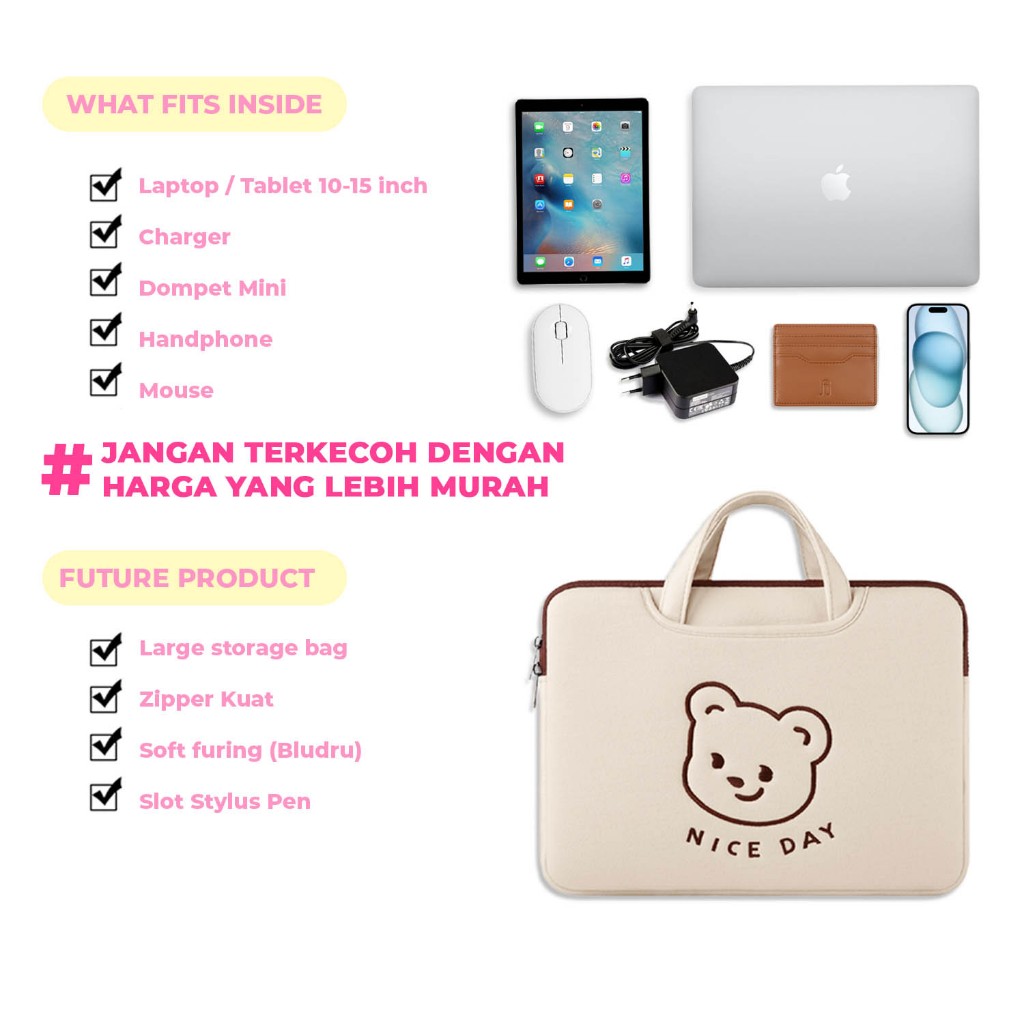 Tas Laptop Wanita Sleeve Pouch Sarung Bag Case Ipad Tab Tablet Macbook Air Pro M3 M2 M1 Pro Asus Zenbook Flip Acer Lenov