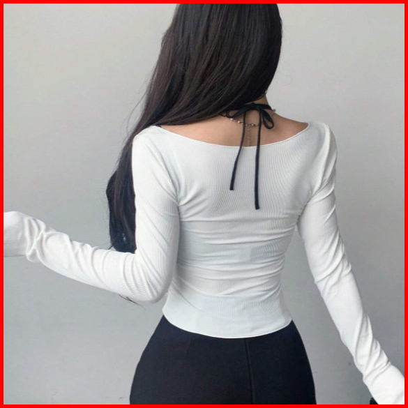 Premium Women T-shirt Two Piece Long Slevee Halter Neck 1801 S M L