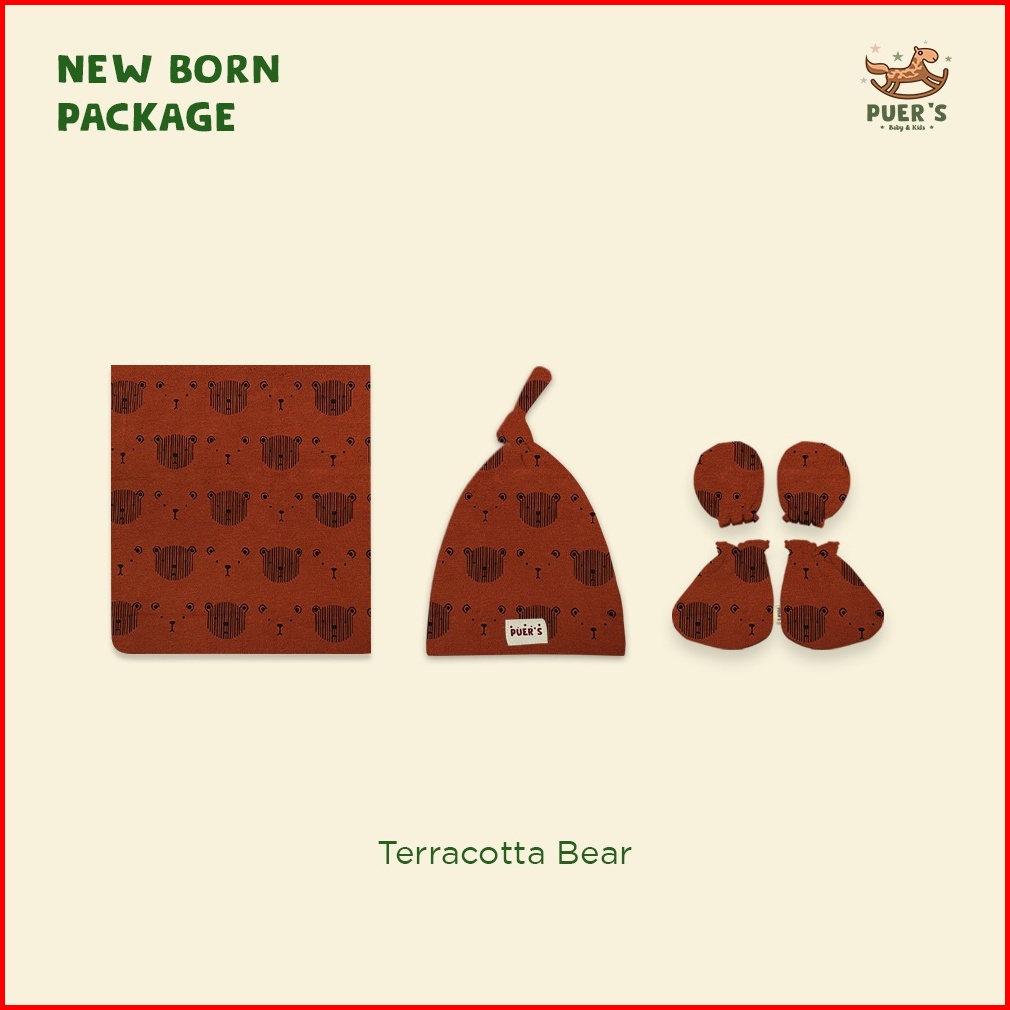 Puers Newborn Package Paket Bedong Bayi Swaddle Set Terracotta Bear