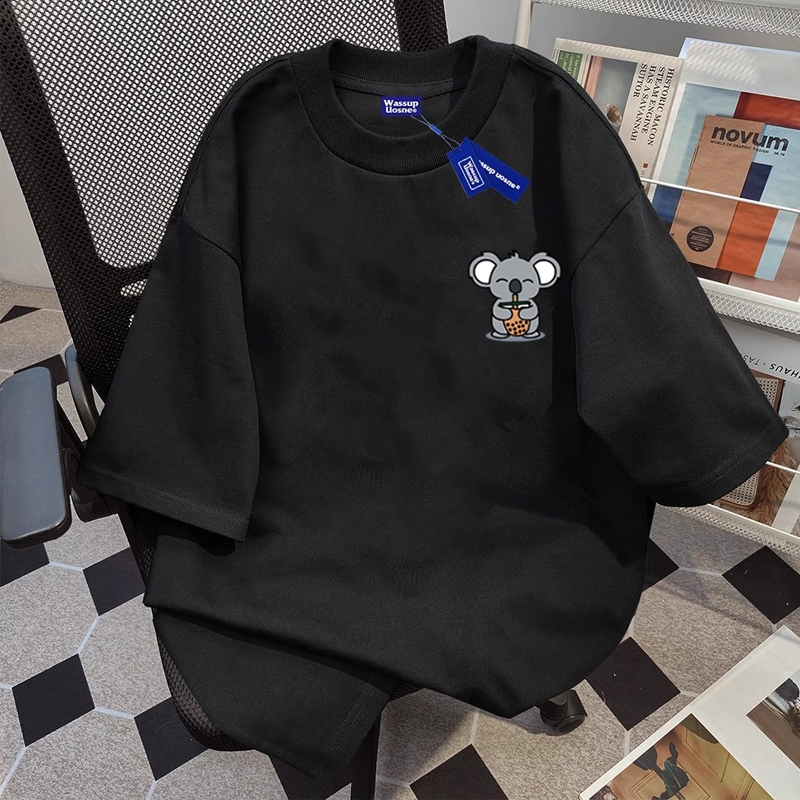 DSSTORY | Korean style Koala minum teh susu print Anti-Uv50+ T-shirt |Atasan Wanita| Kaos Wanita | Korea top Wanita | Atasan Wanita Terbaru 2025 | Kaos Putih | 9.28