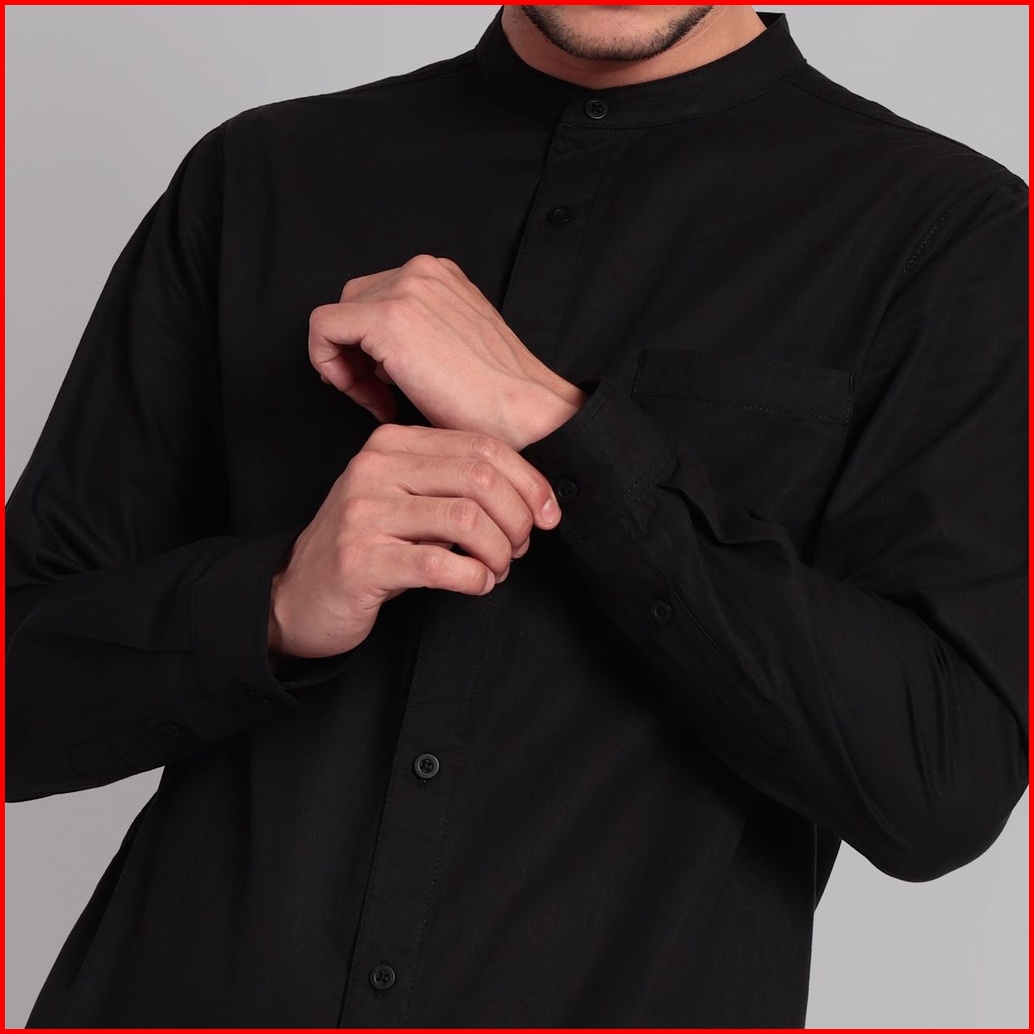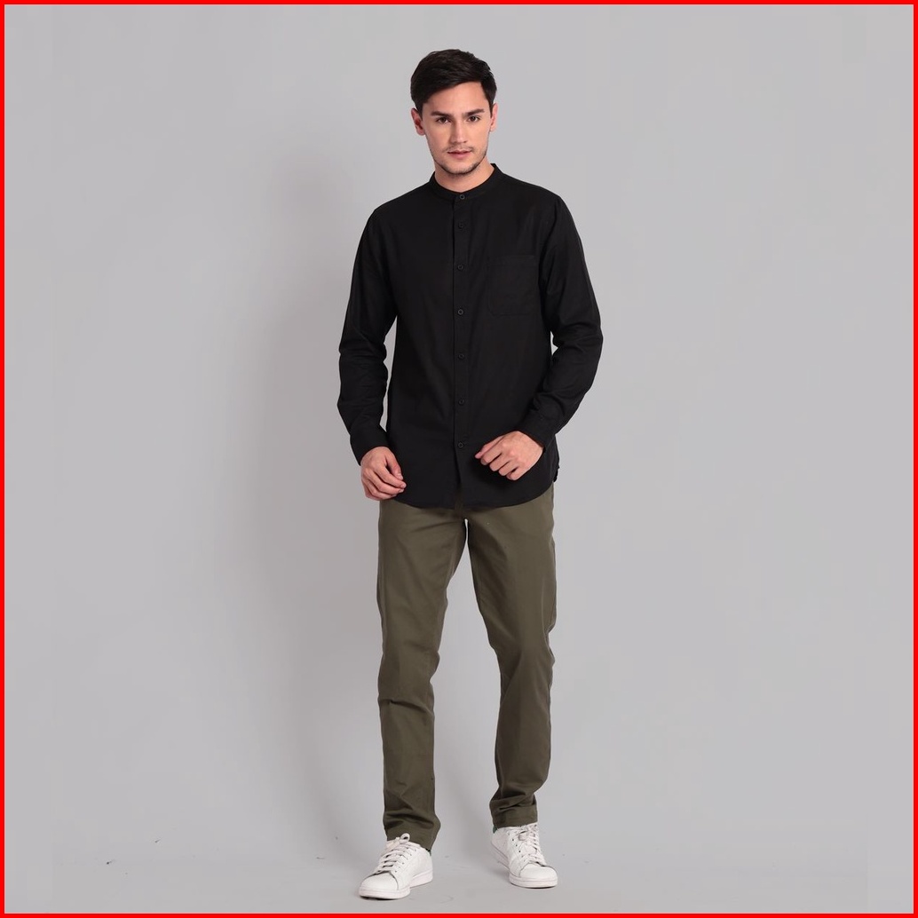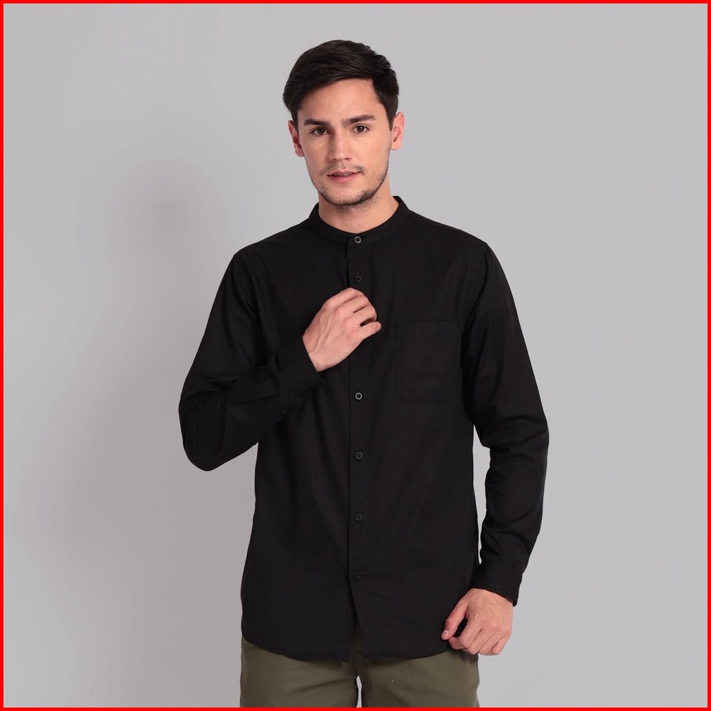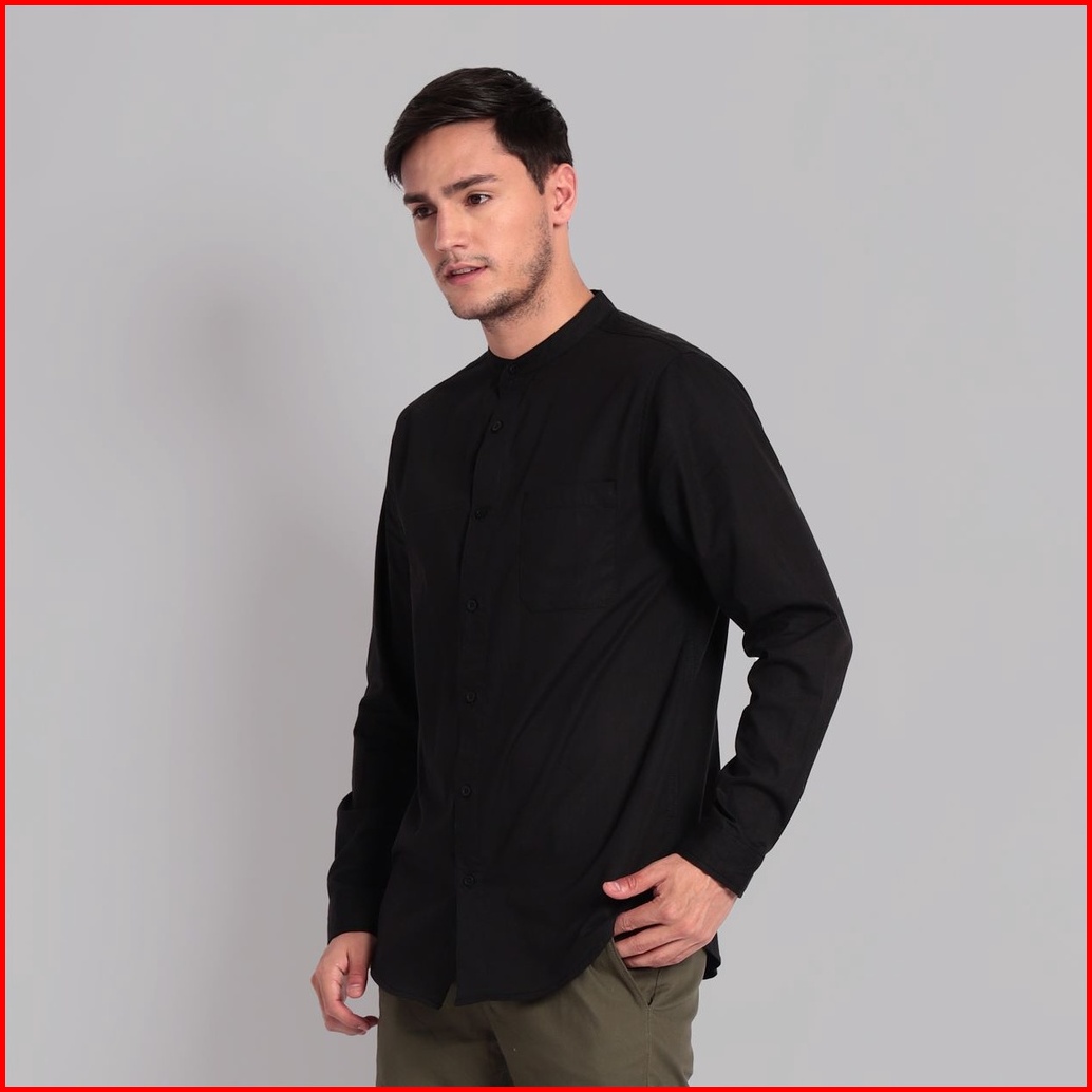 Open Ending Kemeja Pria Shanghai Poplin Panjang Hitam Pls-001