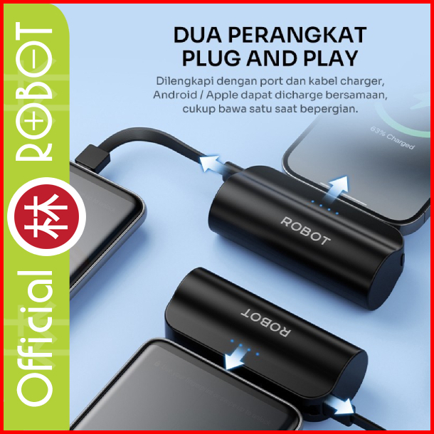 Robot Rp-051c Rp-051l Mini Powerbank 4500 Mah Usb-c Lightning Cable Rp051 Rp51
