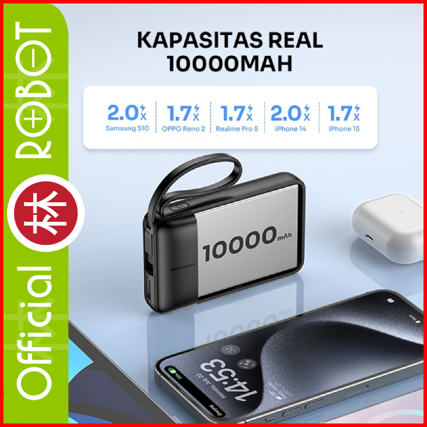 Robot Rt07 5000 Mah Rt17 10000 Mah Smart Powerbank Mini With Cable Usb To Type C Fast Charging