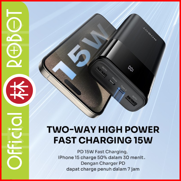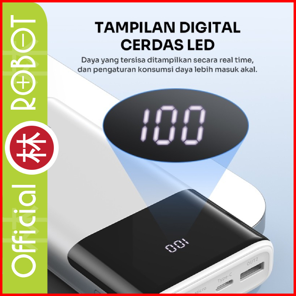 Robot Rt22s Powerbank Fast Charging 20000mah 15w 3 Port Output With Led New Rt22
