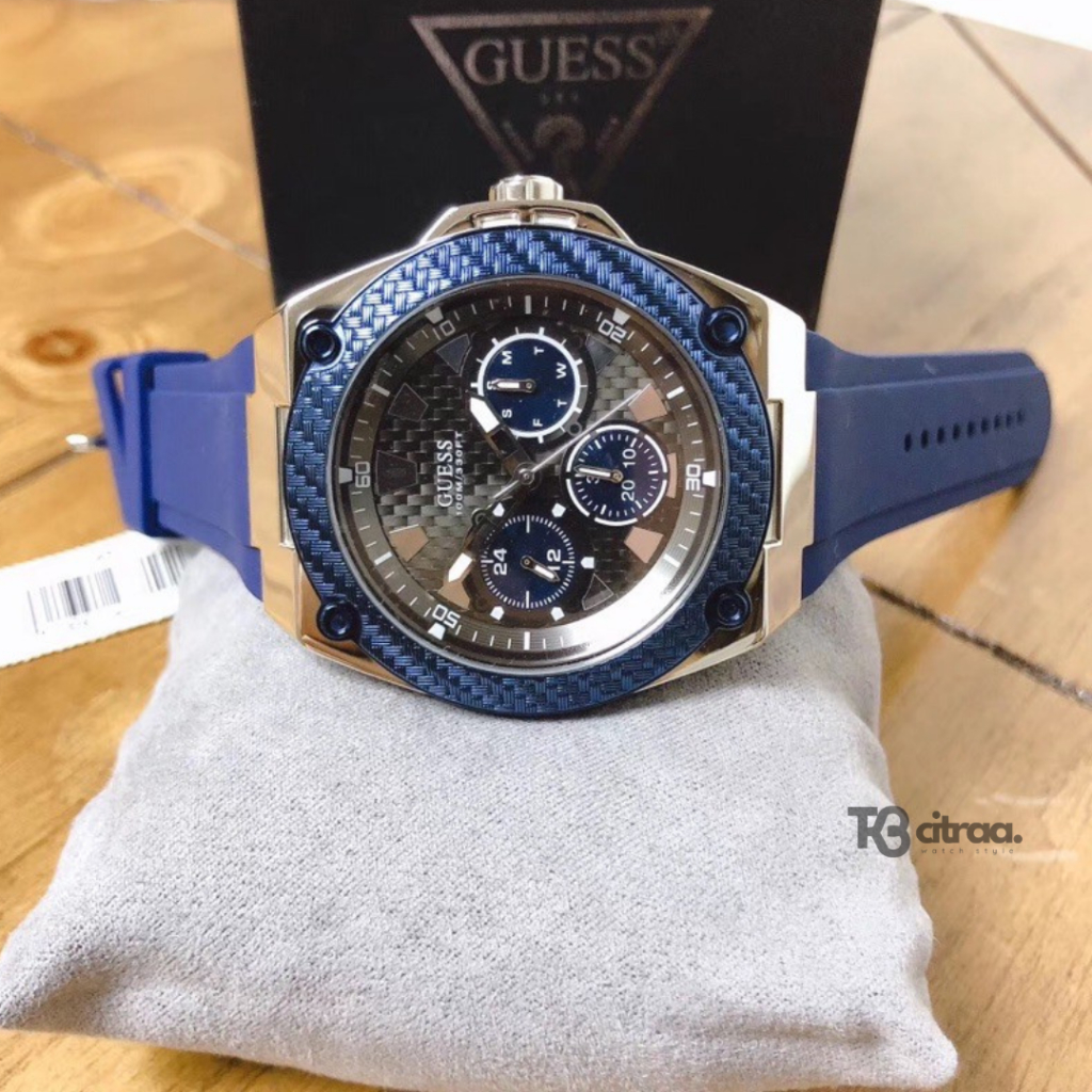 jam tangan fashion pria guess Lagecy analog strap rubber silikon cowok chronograph multifunction day date water resistan
