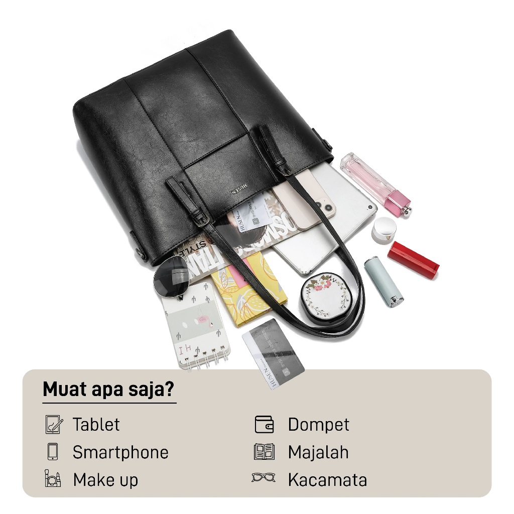 [FREE POUCH] HUSEN Totebag Wanita 2 in 1 Sabhira Bag Tas Kerja Kuliah Jinjing Shoulder Bag Resleting
