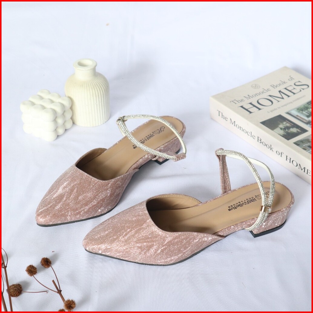Hmf Hikora Sepatu Hak Mules Wanita Glitter 3 Cm Mt45