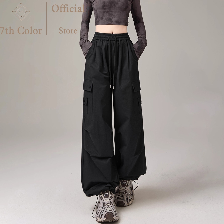 7th Color / Celana Cargo Panjang Wanita Pinggang Karet Celana Korean Style Celana Jogger Panjang Wanita Celana Jumbo Wan