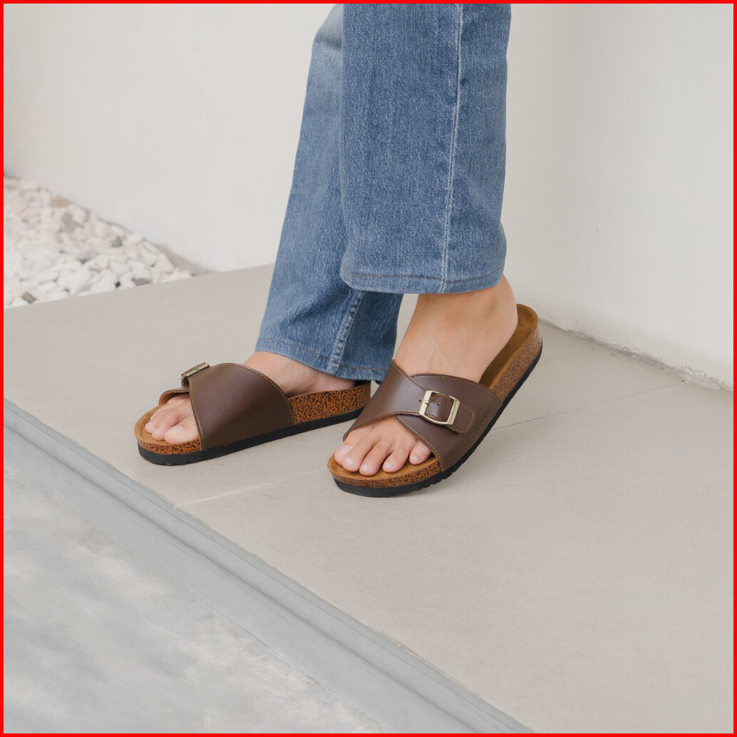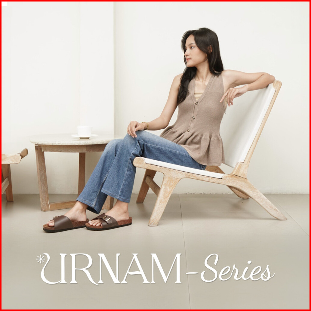 Urnam Sendal Flat Wanita Kasual Anti Slip Nyaman - Brown