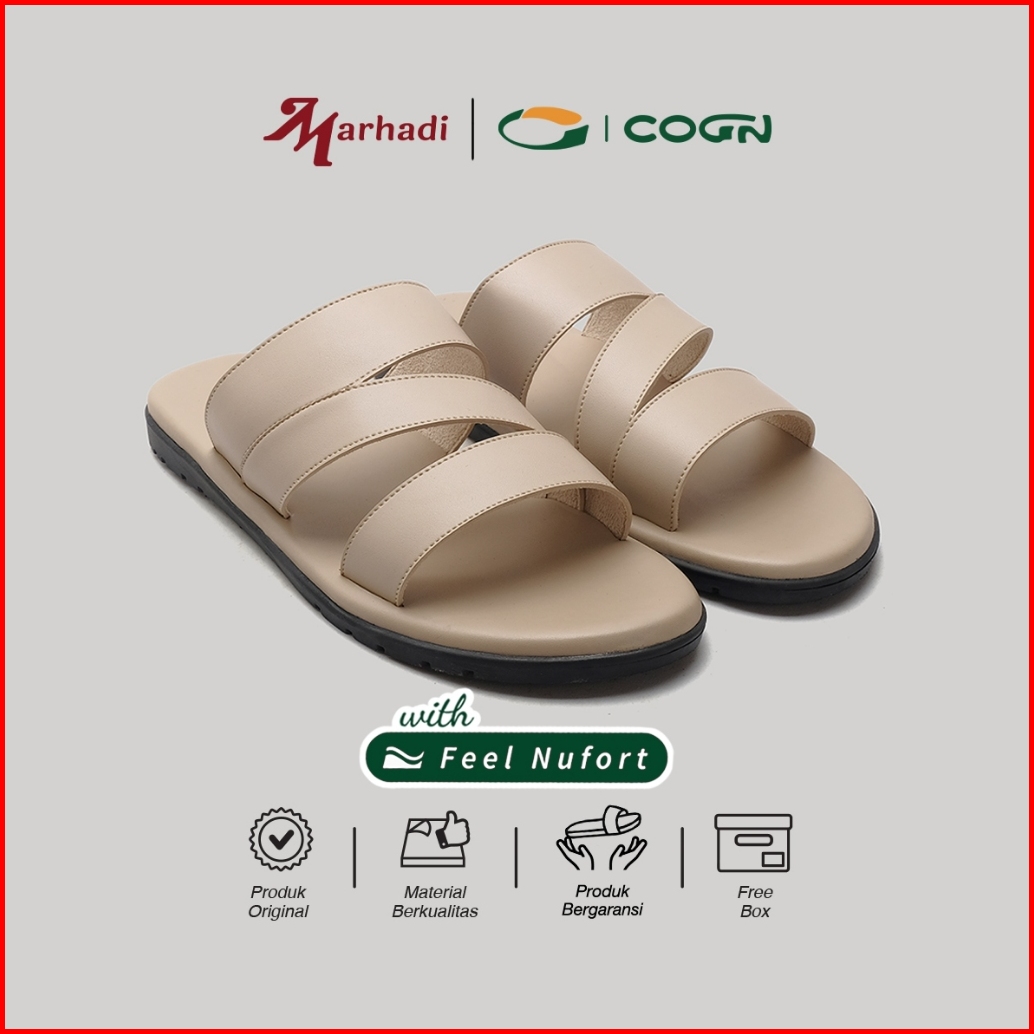 Cogen Sendal Cowok Sandal Slop Pria Kulit Nyaman - Feel Nufort - Cello Creme