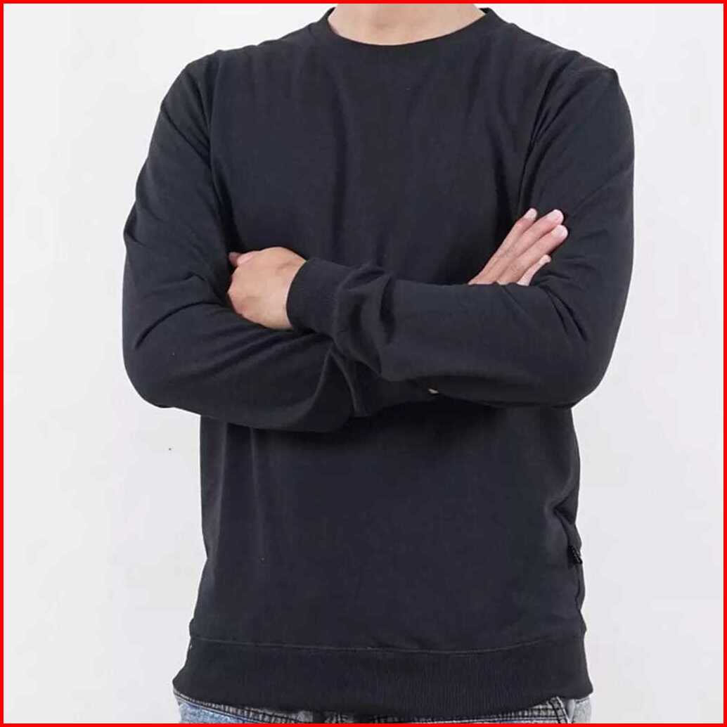 Boneh Crewneck Pria Wanita Sweater Polos Baby Terry Hitam M L Xl