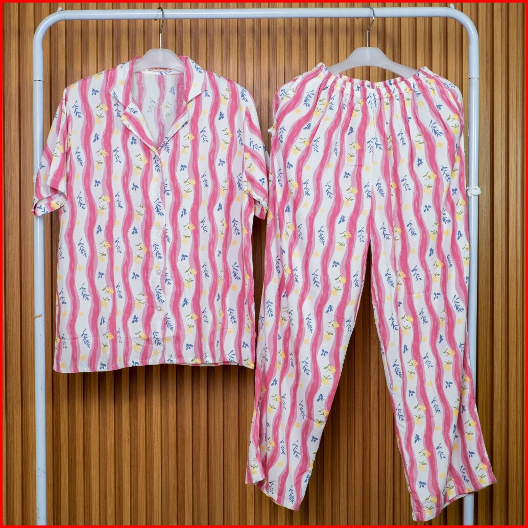 Aykowear Piyama Wanita Set Rayon - Blush Stripe