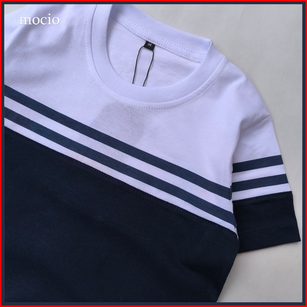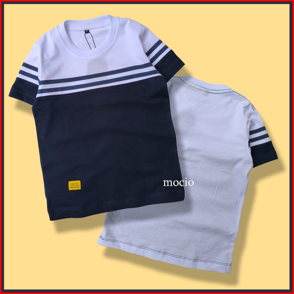 Mocio Dennies - Usia 1-12th - Kaos Distro Anak Laki Laki Motif Salur Stripe - Baju Kaos Anak Salur