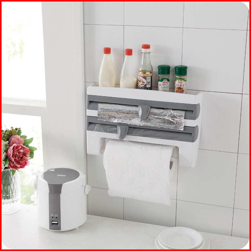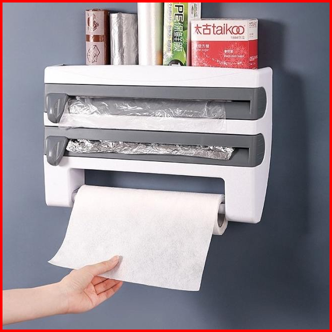 Rak Dapur Serbaguna 3in1 Tempat Tisu Gulung Cling Wrap Aluminium Foil