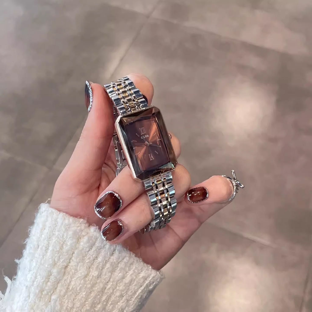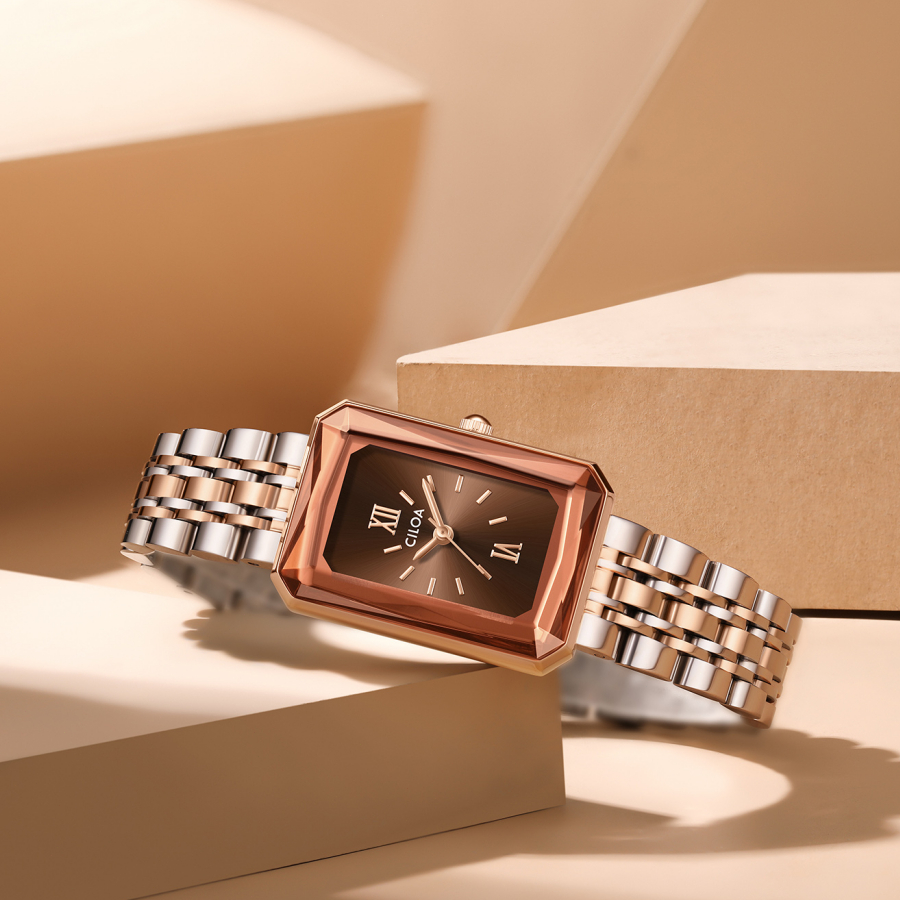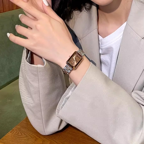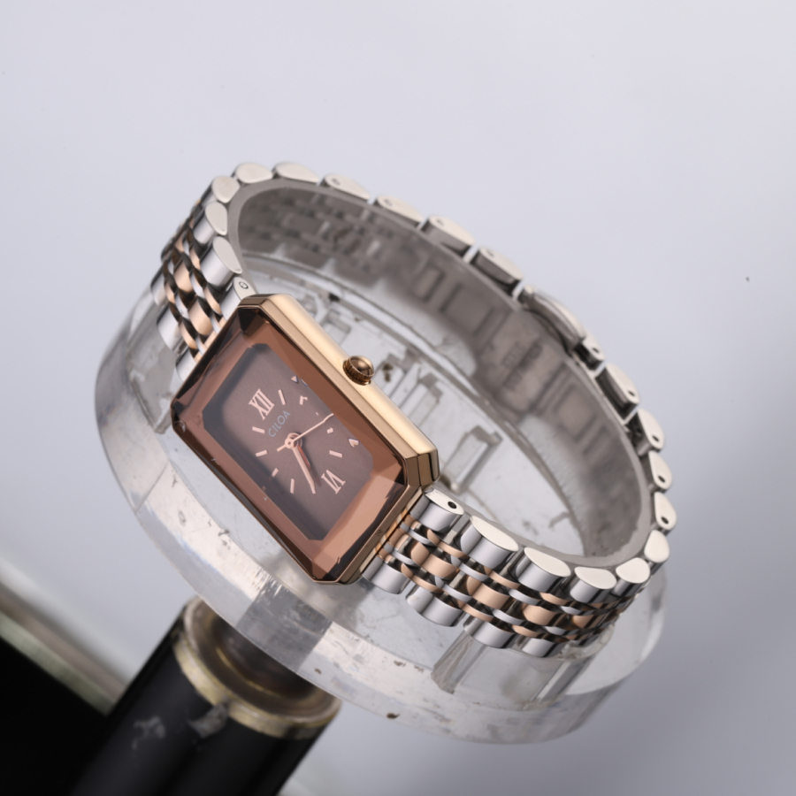 CILOA Jam Tangan Quartz Wanita Tahan Air dengan Desain Cokelat Kotak Elegan[6882]