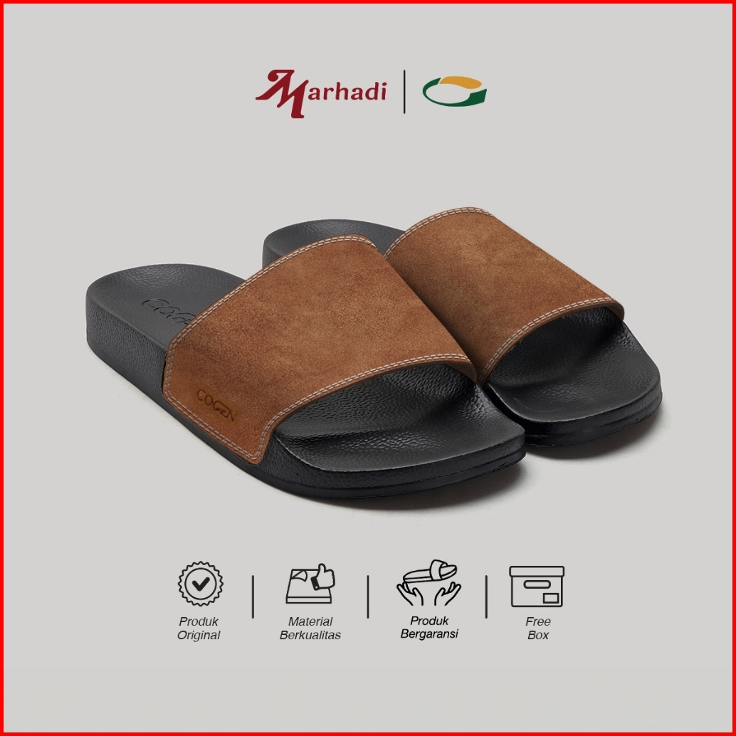 Marhadi Sandal Pria Cogen Sendal Slide Nyaman Suede - Finest Tan