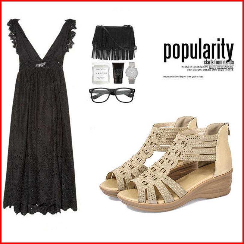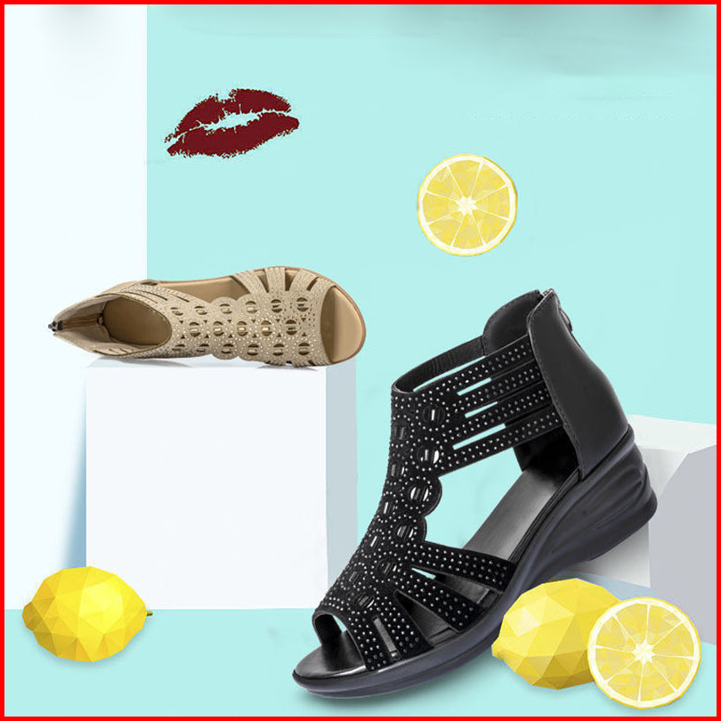 Codsepatu Wanita Open Toe Sepatu Wedges Wanita Sepatu Wanita Sandal Tinggi Gaya Romawi Sepatu Kasual Bertumit Tinggi Bag