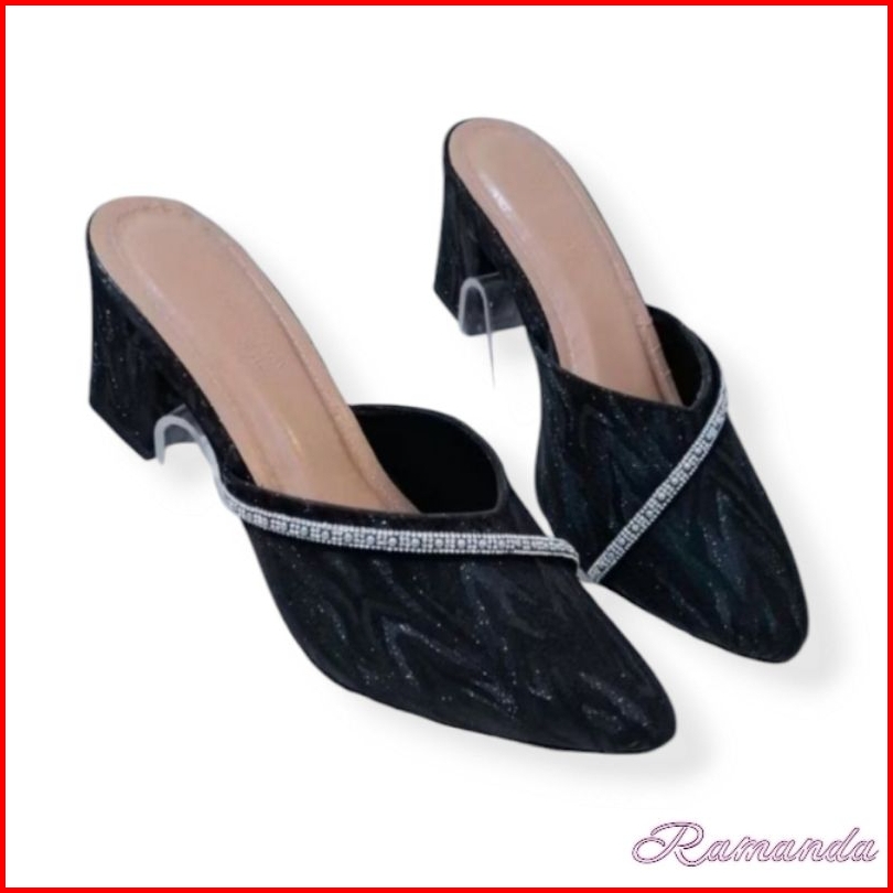 Sandal Pesta Wanita Heels Sepatu Slip On Mules 5cm Kekinian