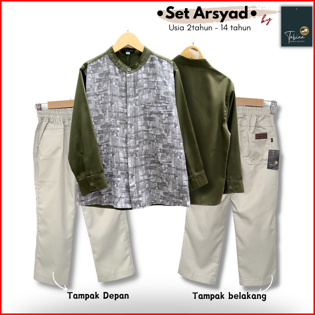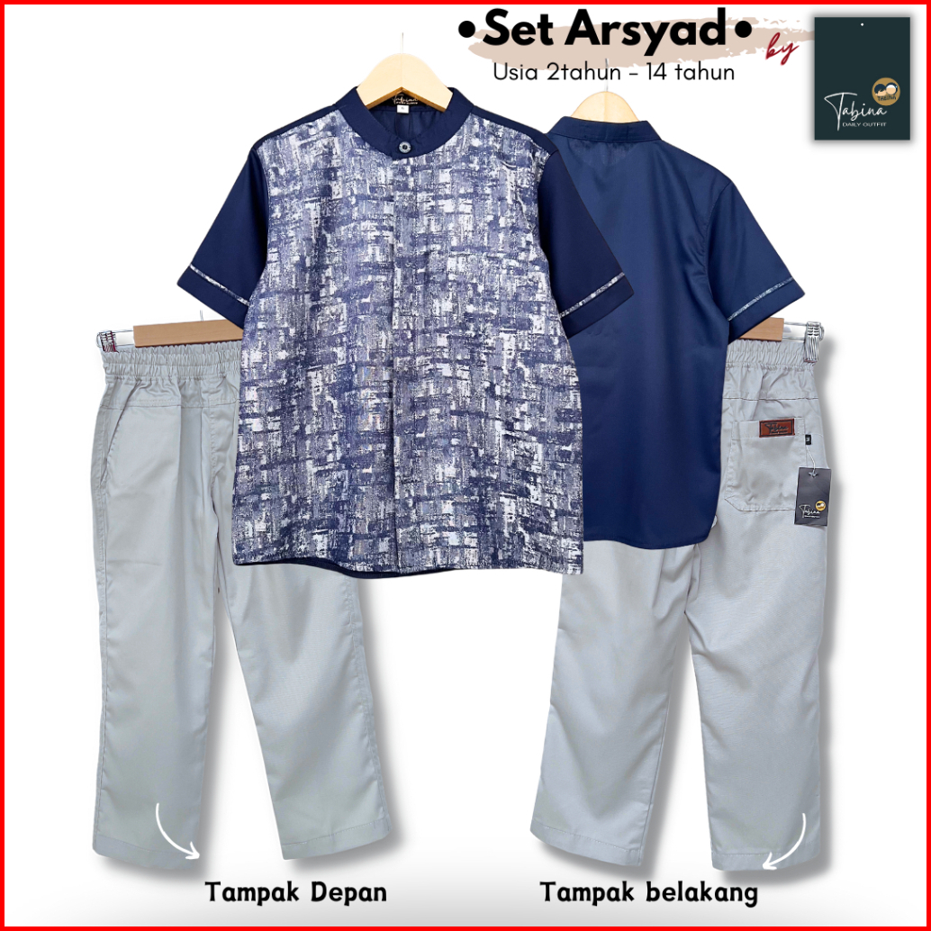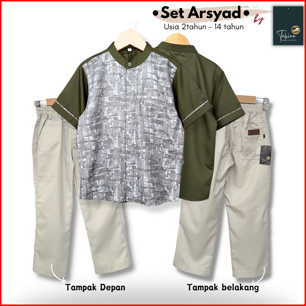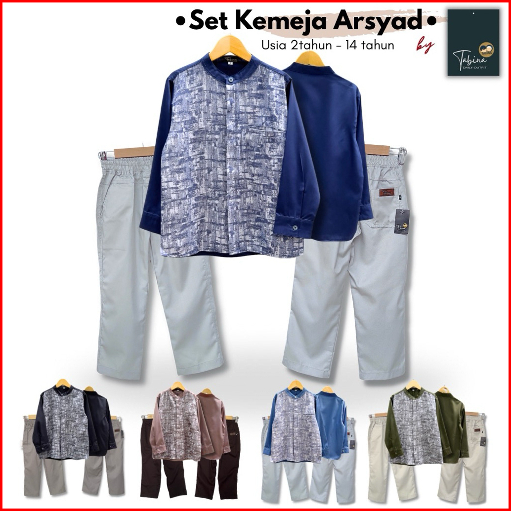Setelan Kemeja Koko Lengan Panjang Anak Laki Laki Tabina Seri Arsyad Drill Usia 2 Hingga 14 Tahun