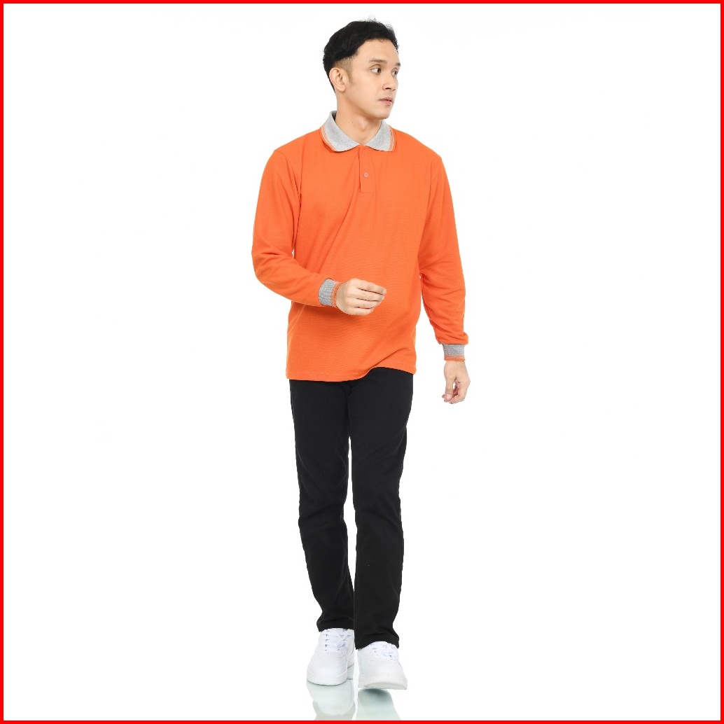 Kaos Polo Pria Kerah Abu Lengan Panjang Kaos Pria Berkerah