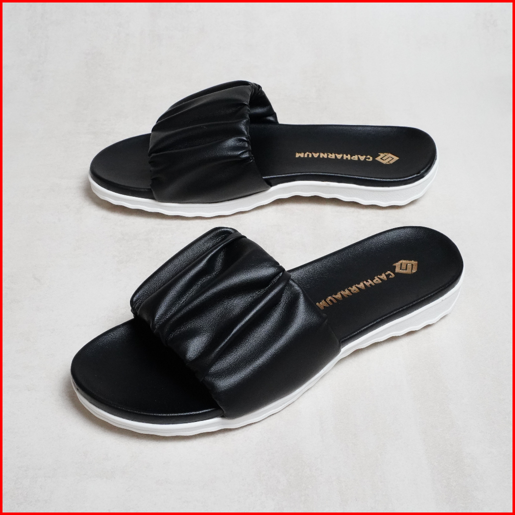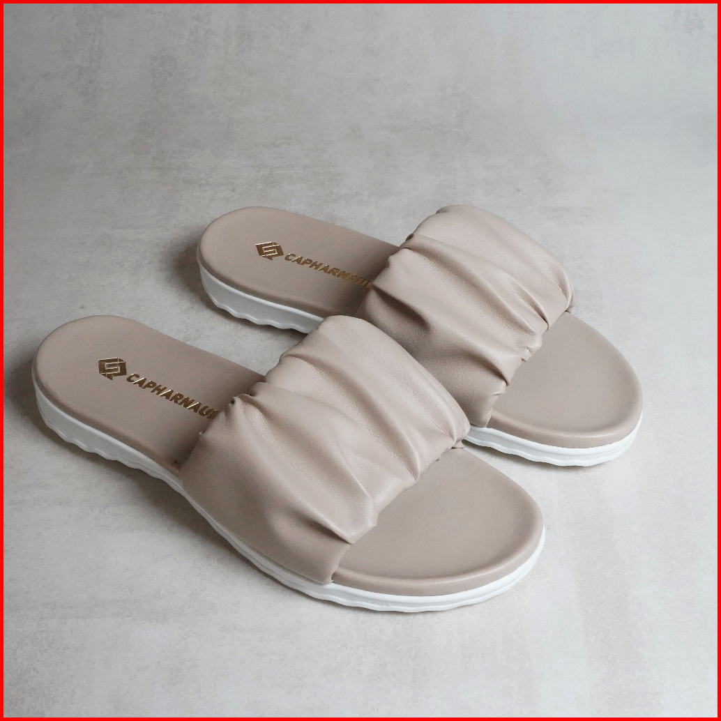 Capharnaum Dak411 Sandal Selop Puffy Kerut Wanita Sendal Slide Kasual Wanita Dewasa