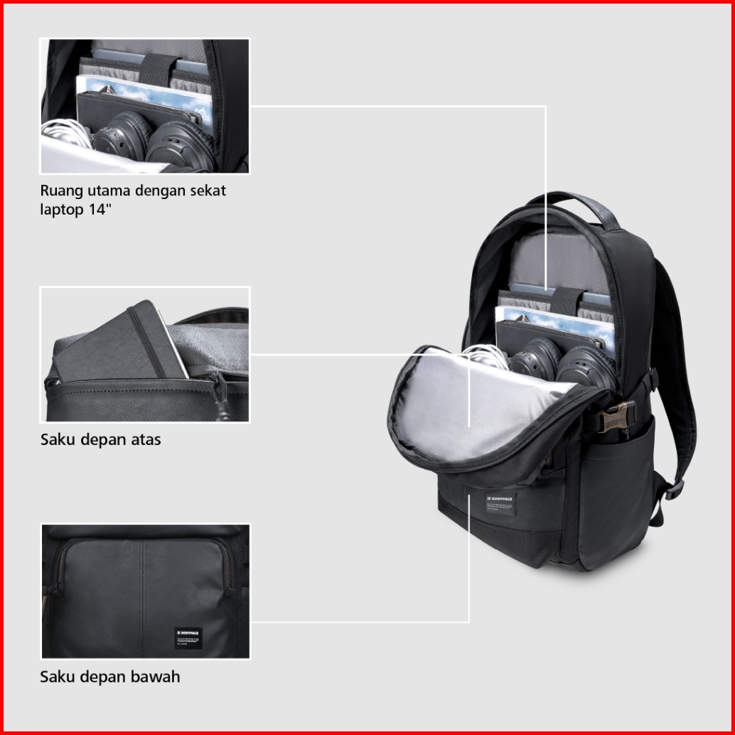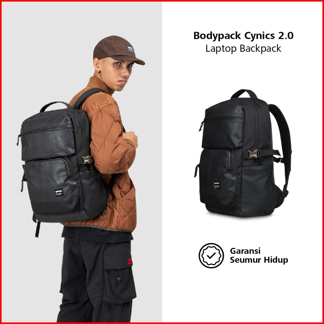 Bodypack Cynics 2.0 Laptop Backpack 15 Inch Tas Ransel Kerja Kuliah Sekolah Classic - Hitam