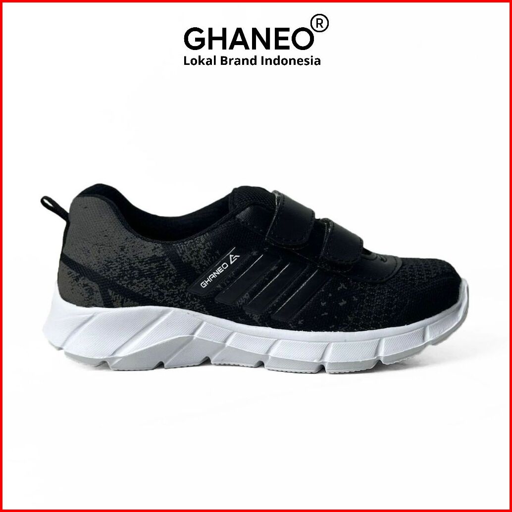 Ghaneo - Sepatu Anak Sekolah Sd Tk Ukuran 31-38 Hitam Abu K-03