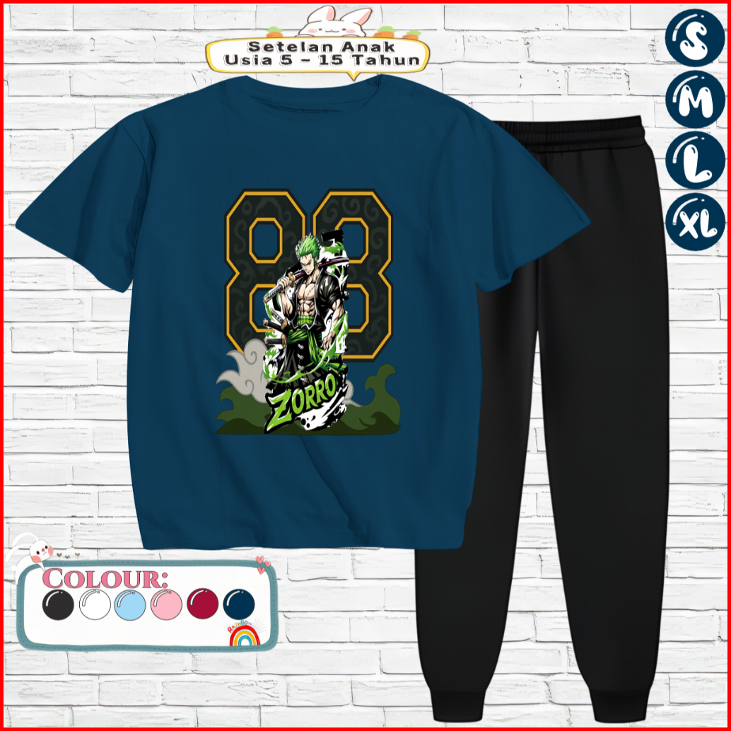 Setelan Kaos Anak Laki Laki Celana Jogger 5-15 Tahun Motif Zorro 88
