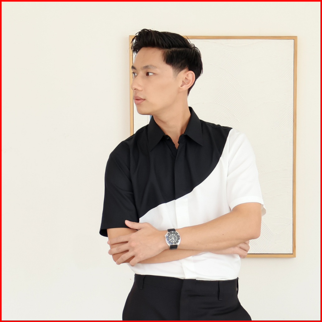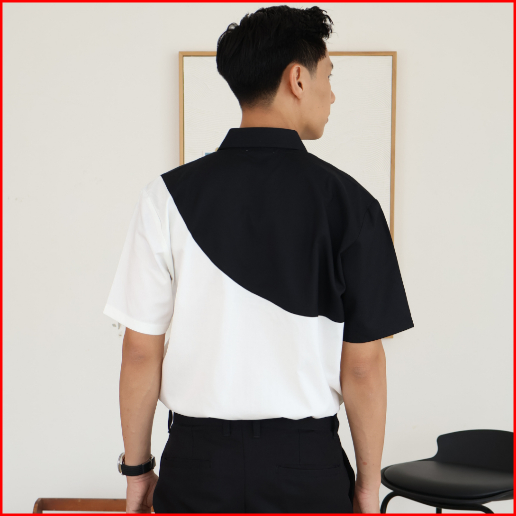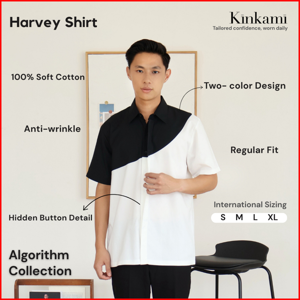 Kemeja Pria Lengan Pendek Premium Hitam Putih Harvey Black By Kinkami