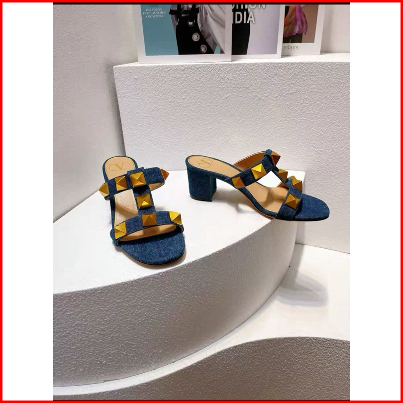 Heels Stude Mewah Ad100 Kulit Denim 5cm