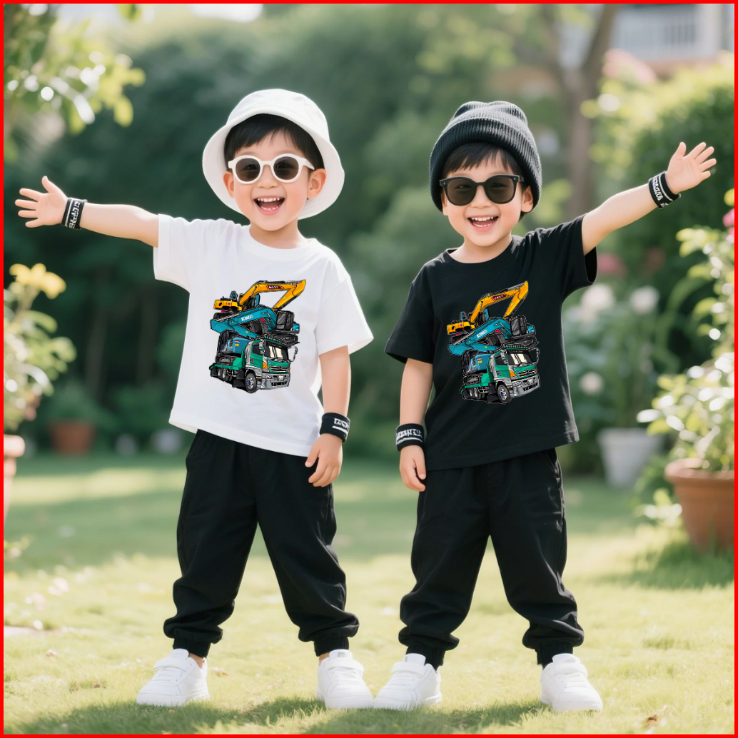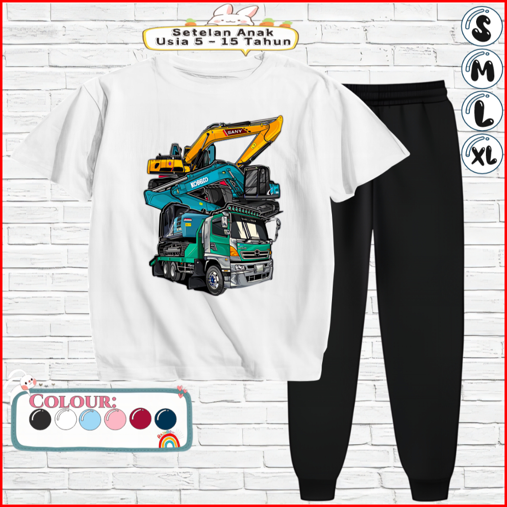 Setelan Anak Laki Laki Celana Jogger 5-15 Tahun Motif Truck Excavator