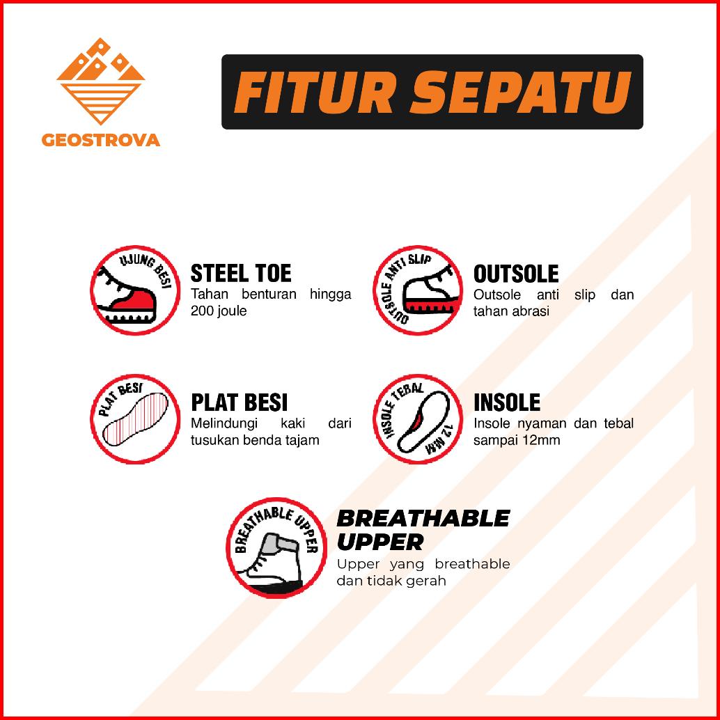 Geostrova Sepatu Safety Pria Ms-1 Black - Ujung Besi Slip Puncture Resist Awet Anti Jebol