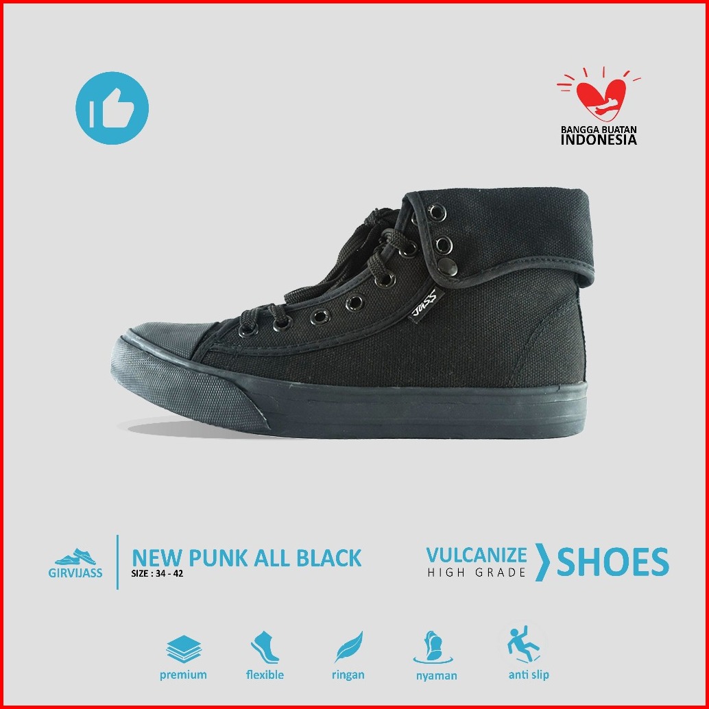 Girvi New Punk Sepatu Pramuka Jass Kanvas Vulcanized Bertali Hitam Polos Ukuran 3742