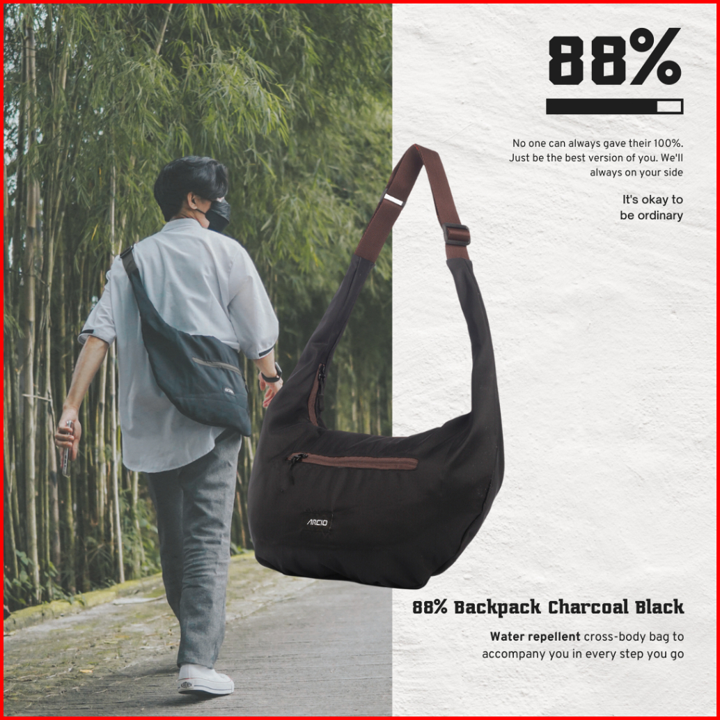 Arcio - Tas Selempang Nylon Waterproof Anti Air Sling Shoulder Bag Black