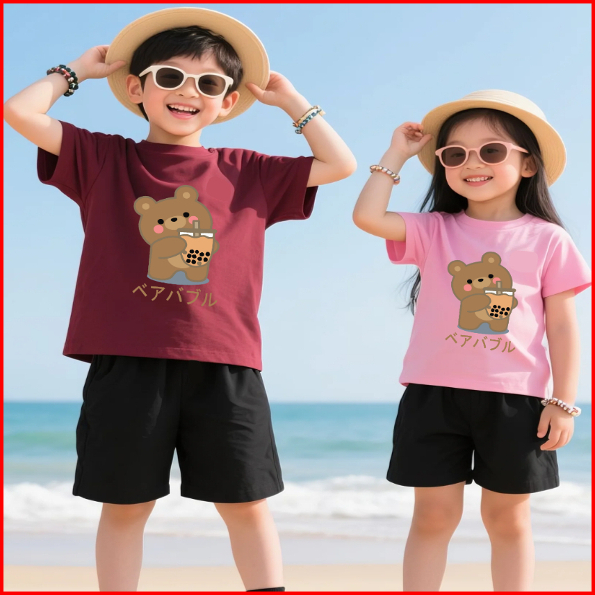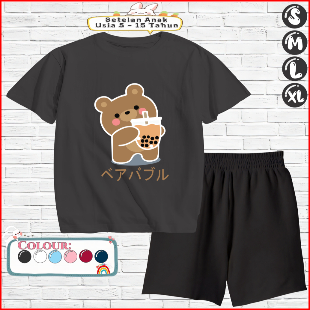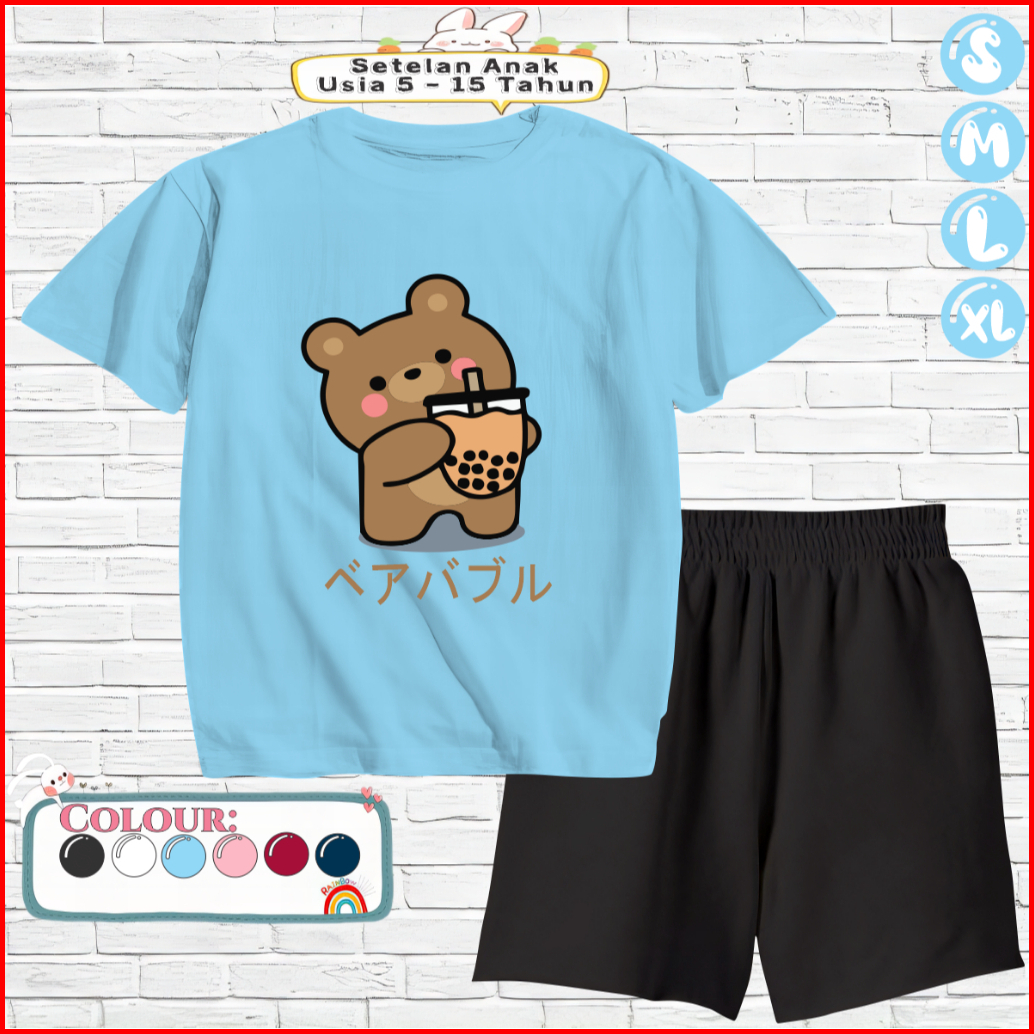 Setelan Kaos Anak Celana Pendek 5-15 Tahun Motif Boba