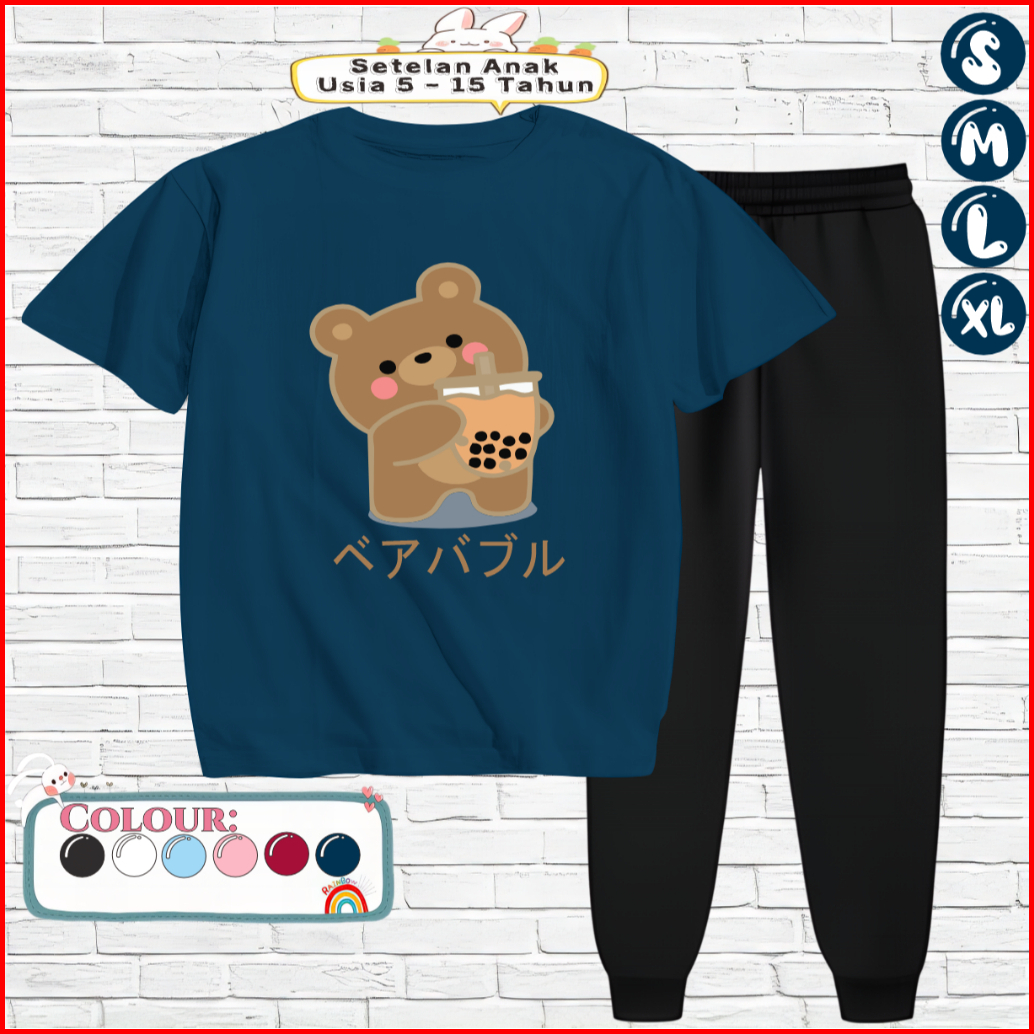 Setelan Kaos Anak Celana Jogger 5-15 Tahun Motif Boba