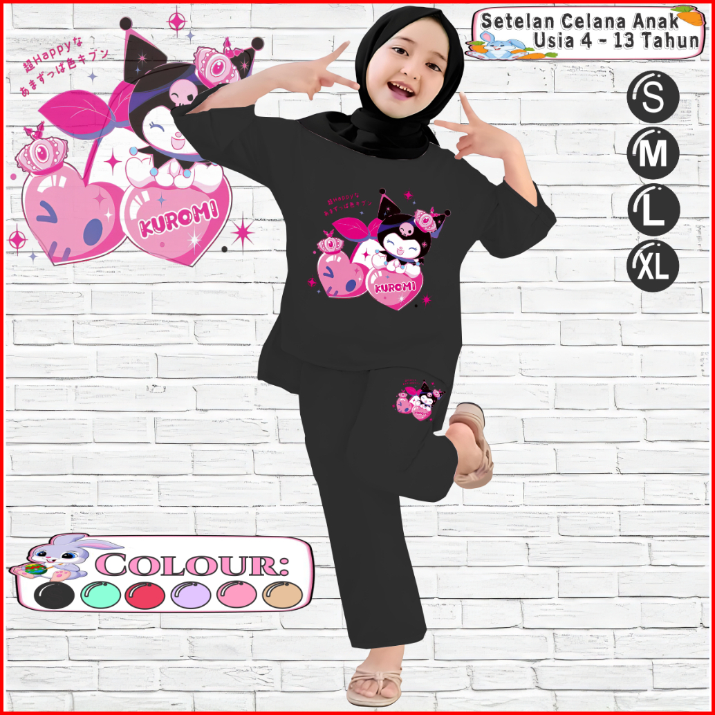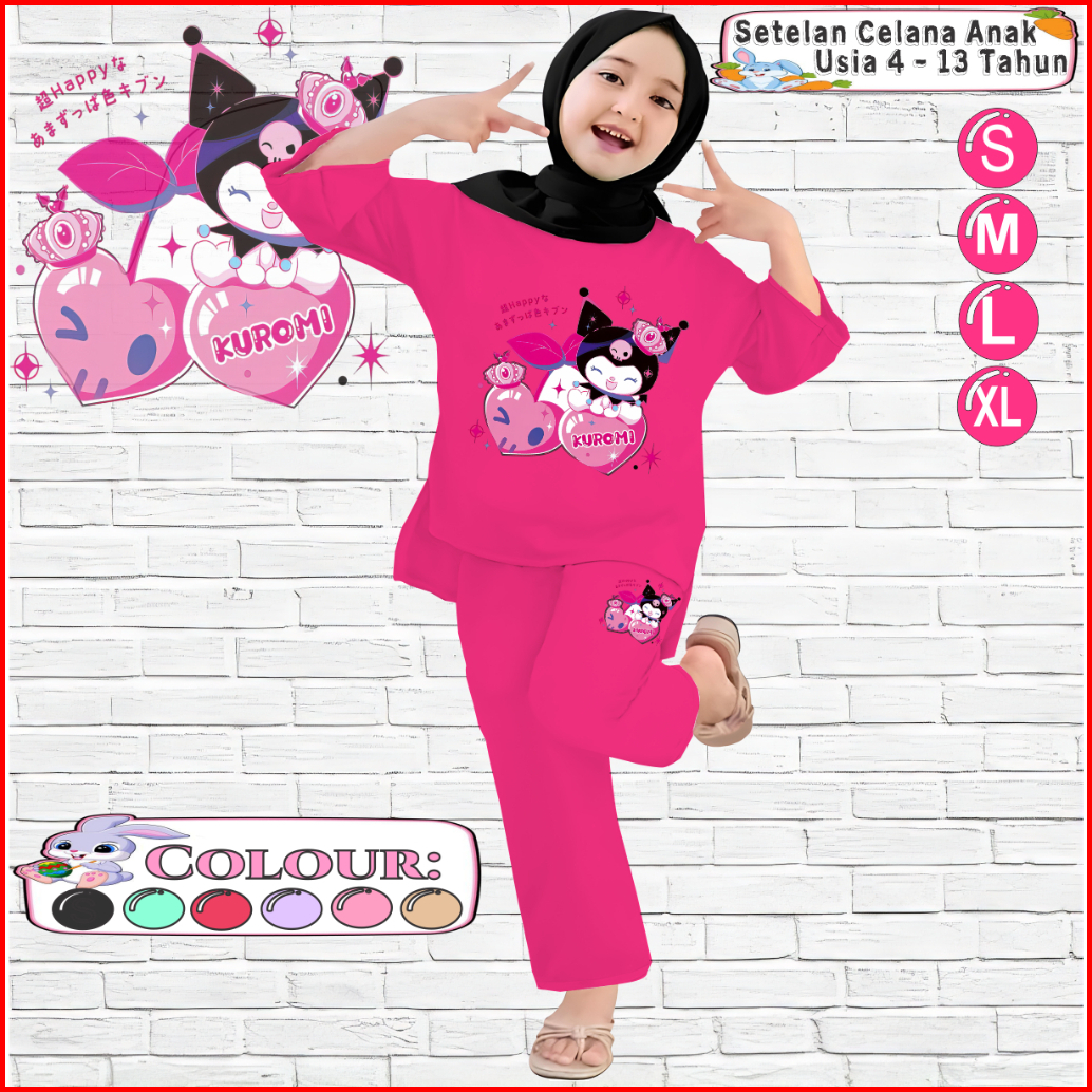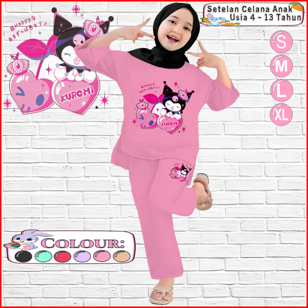 Baju Setelan Anak Perempuan Kaos Dan Celana Panjang Terbaru 2025 4-13 Tahun Belah Happy Kuro