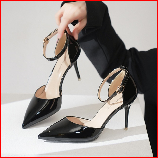 High Heels 7cm Wanita Hitam Sendal Hak Tinggi 9cm Perempuan Sling Back Heels Elegant Cewek Sh-040