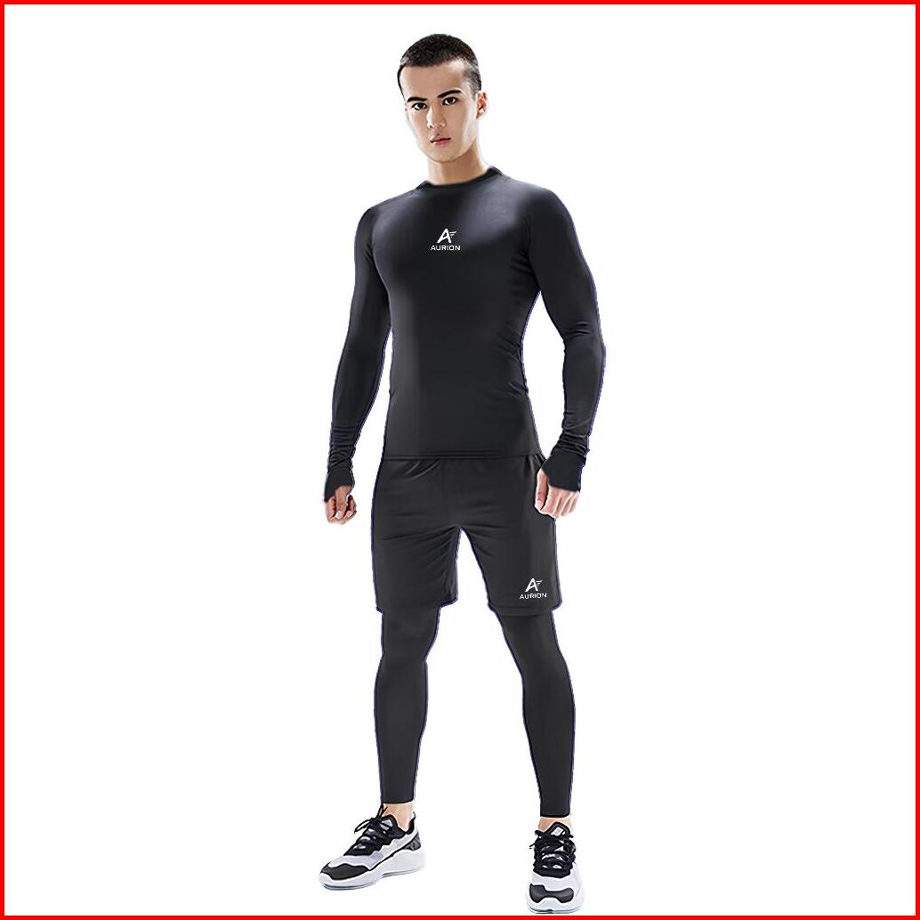 Aurion Setelan Baselayer Lengan Panjang Celana Pendek Olahraga Dan Manset Legging Pria Wanita