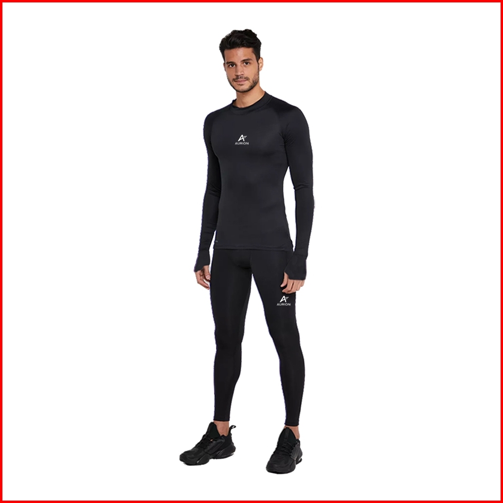 Aurion Setelan Baselayer Manset Lengan Panjang Dan Legging Olahraga Sepakbola Futsal Lari Gym