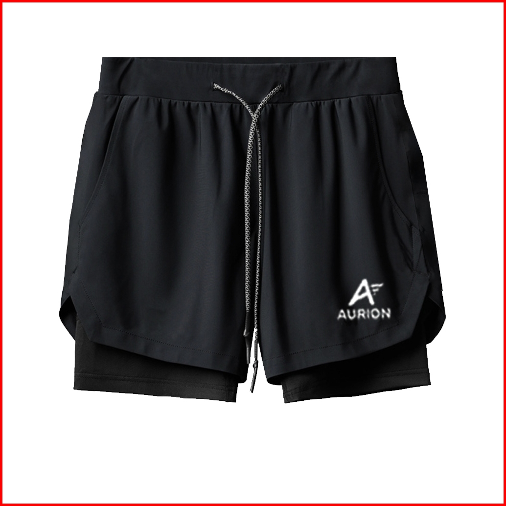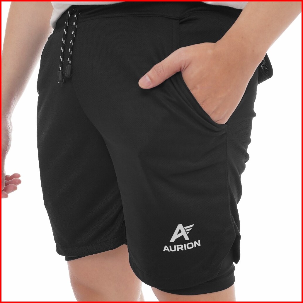 Aurion Celana Pendek 2 In 1 Bawahan Olahraga Lari Jogging Pria Wanita