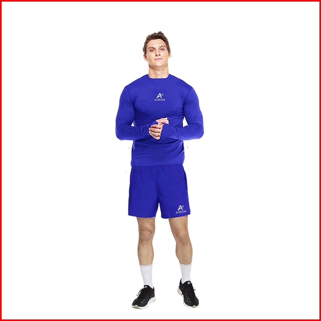 Aurion Setelan Baselayer Manset Lengan Panjang Dan Celana Pendek Olahraga Sepakbola Futsal Lari Gym