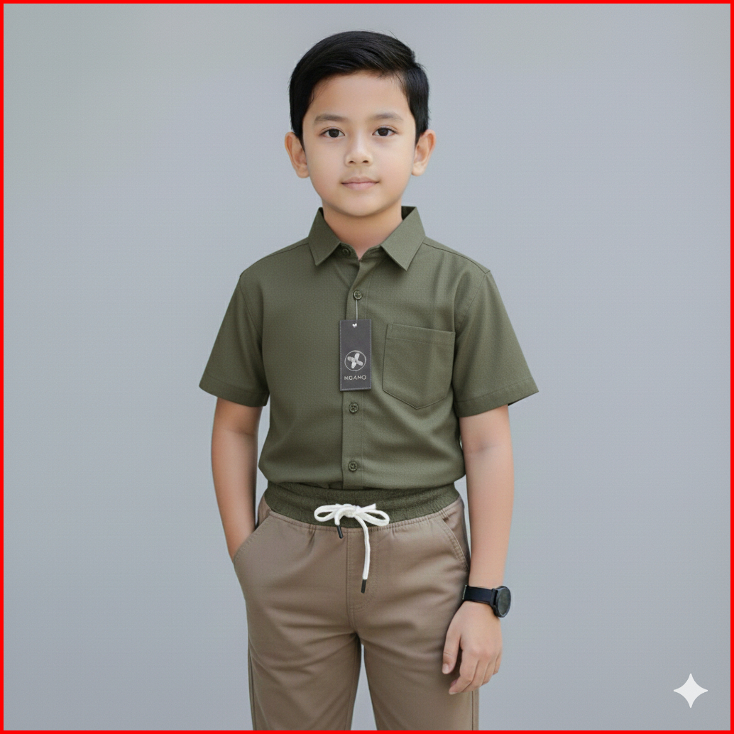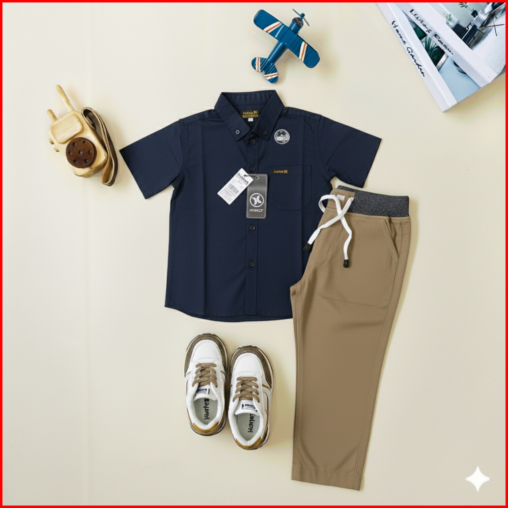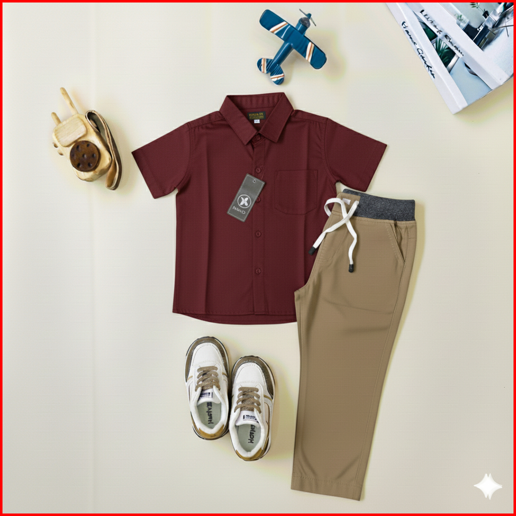 Setelan Kemeja Anak Laki Laki Celana Panjang Chinos Polos Katun Premium