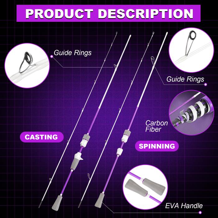 Sougayilang 1.8m/1.68m Ultralight Carbon Fiber Spinning Baitcasting Fast Lure Fishing Rods