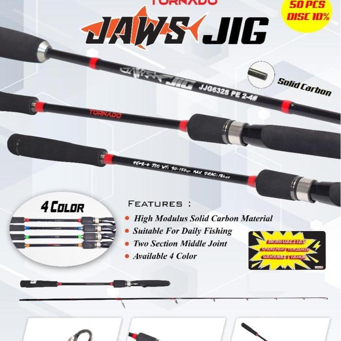 TORNADO Joran Pancing Spinning JAWS JIG 189cm PE 1-3 dan PE 2-4 Material Solid Carbon Joran Jigging